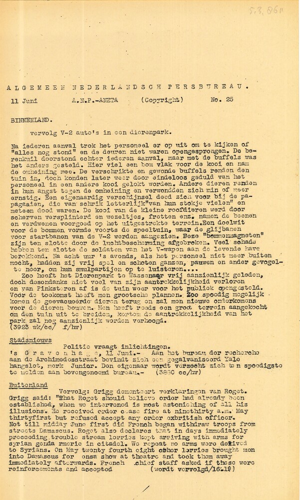 Vel: Algemeen Nederlandsch Persbureau, mededelingen,...