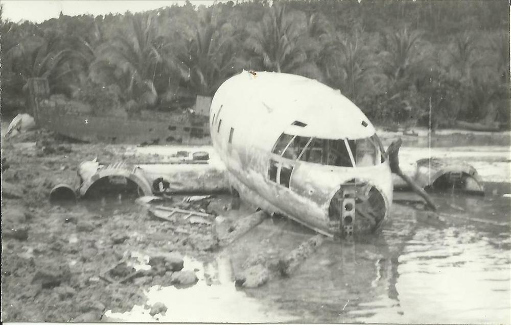 Biak, Nieuw-Guinea; wark Curtiss C-46 Commando