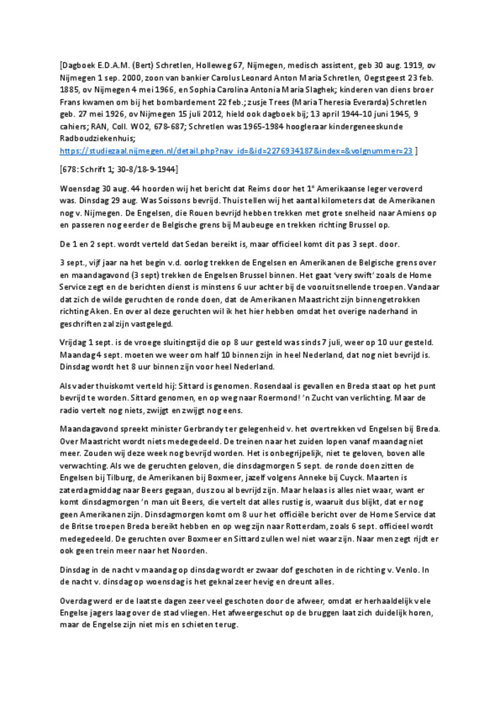 Het dagboek van Bert Schretlen, uitgetypte versie