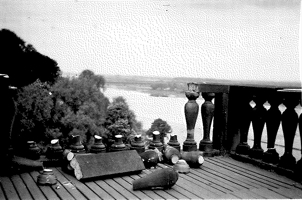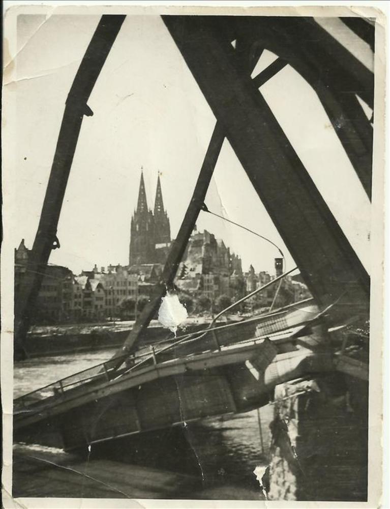 stuk ingestorte brug met op de achtergrond de Dom va...