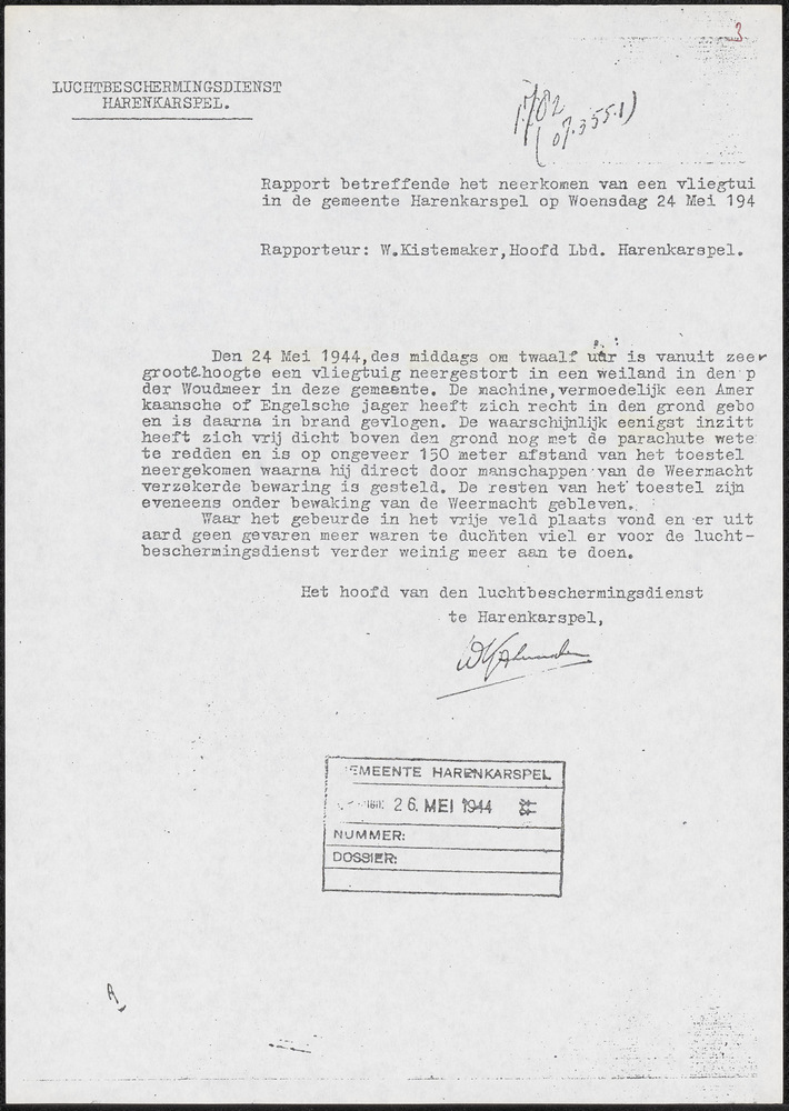 Proces-verbaal betreffende een neergestort vliegtuig
