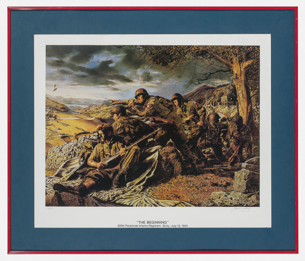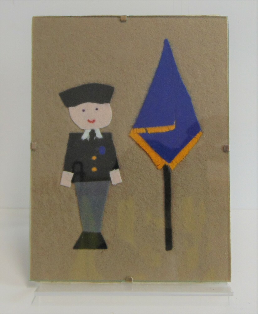 ingelijst vilten afbeelding van soldaat met vaandel