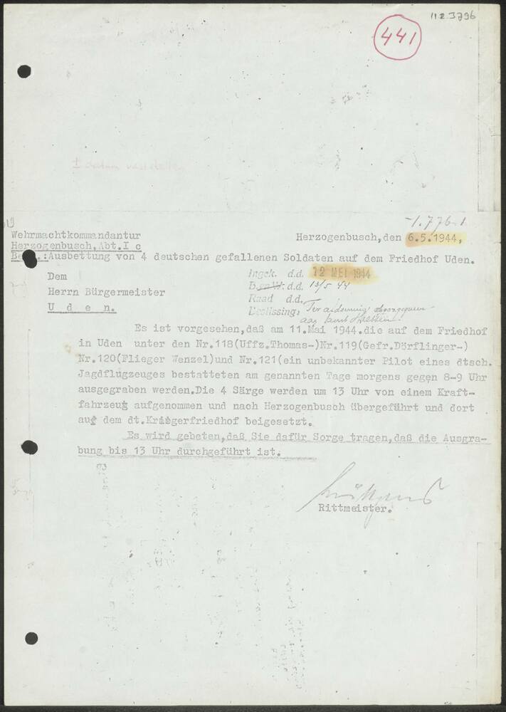 Rapport Wehrmachtkommandantur Herzogenbosch Abt. 1c,...