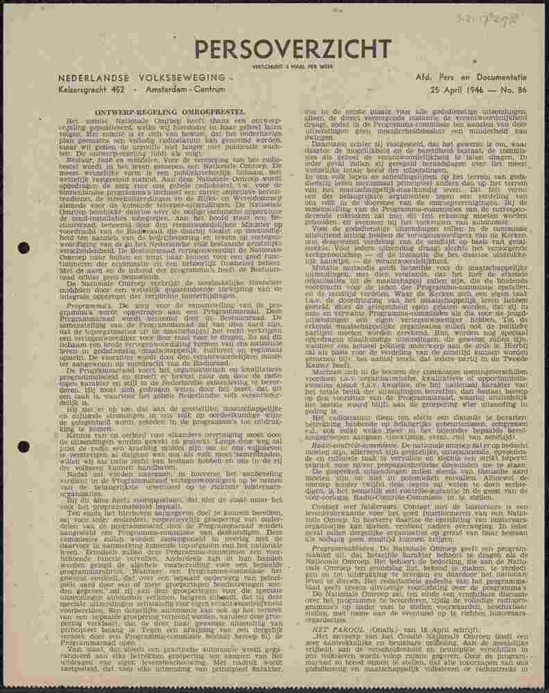 Persoverzicht Nederlandse Volksbeweging, no. 86, 25 ...
