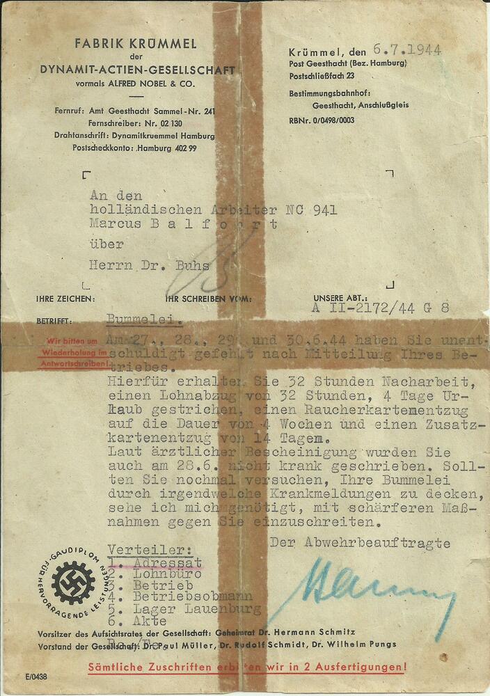 Brief van Fabrik Krümmel der Dynamit-Actien-Geschell...