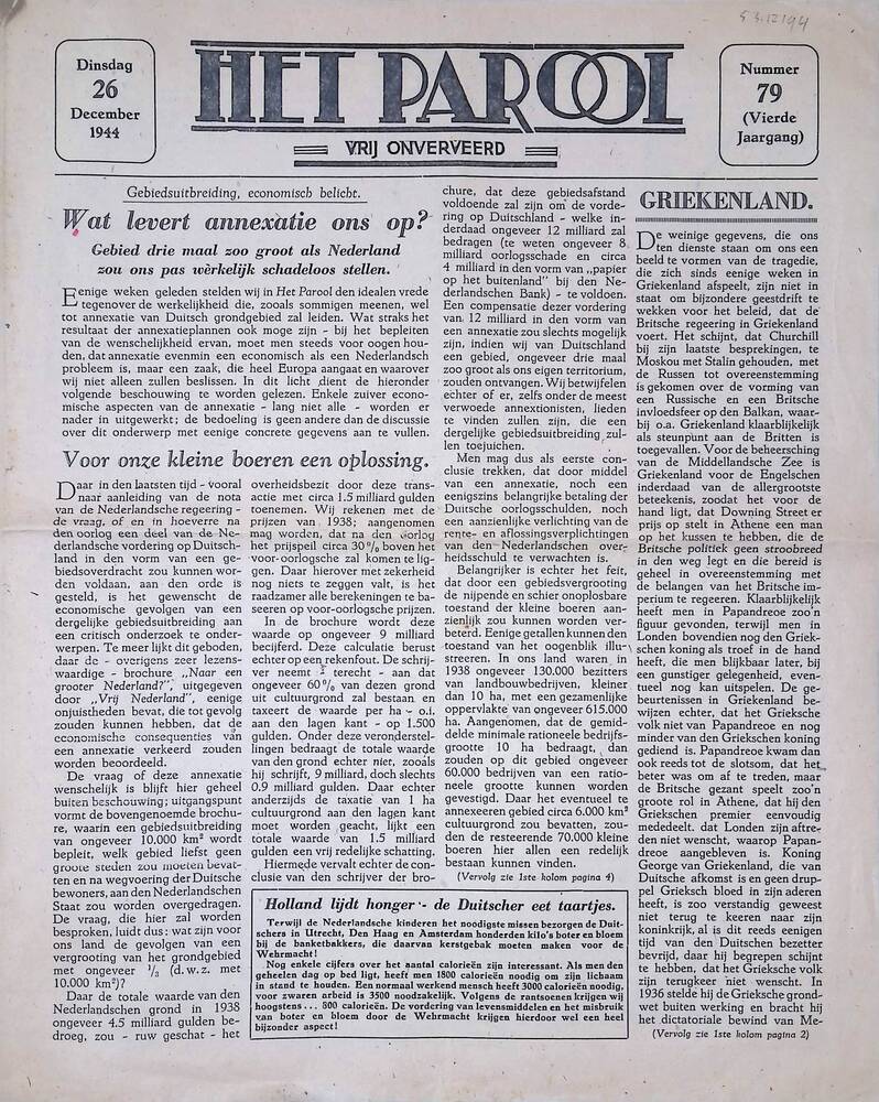 Het Parool, vrij onverveerd, dinsdag 26 december 194...