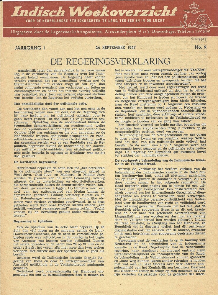 Indisch Weekoverzicht voor de Nederlandse strijdkrac...