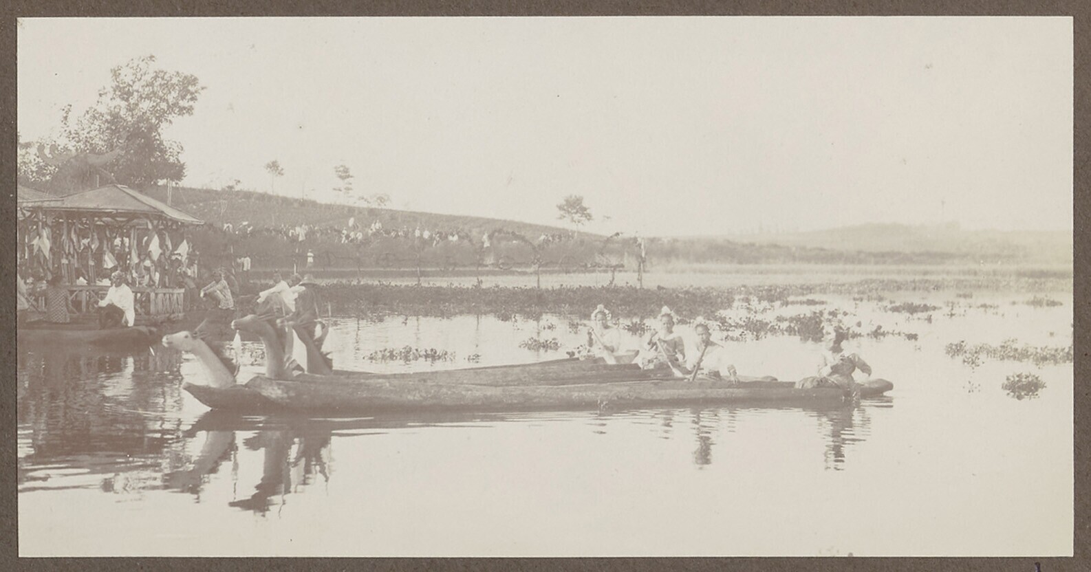 Javaanse meisjes in boomstamkano`s op het meer van B...