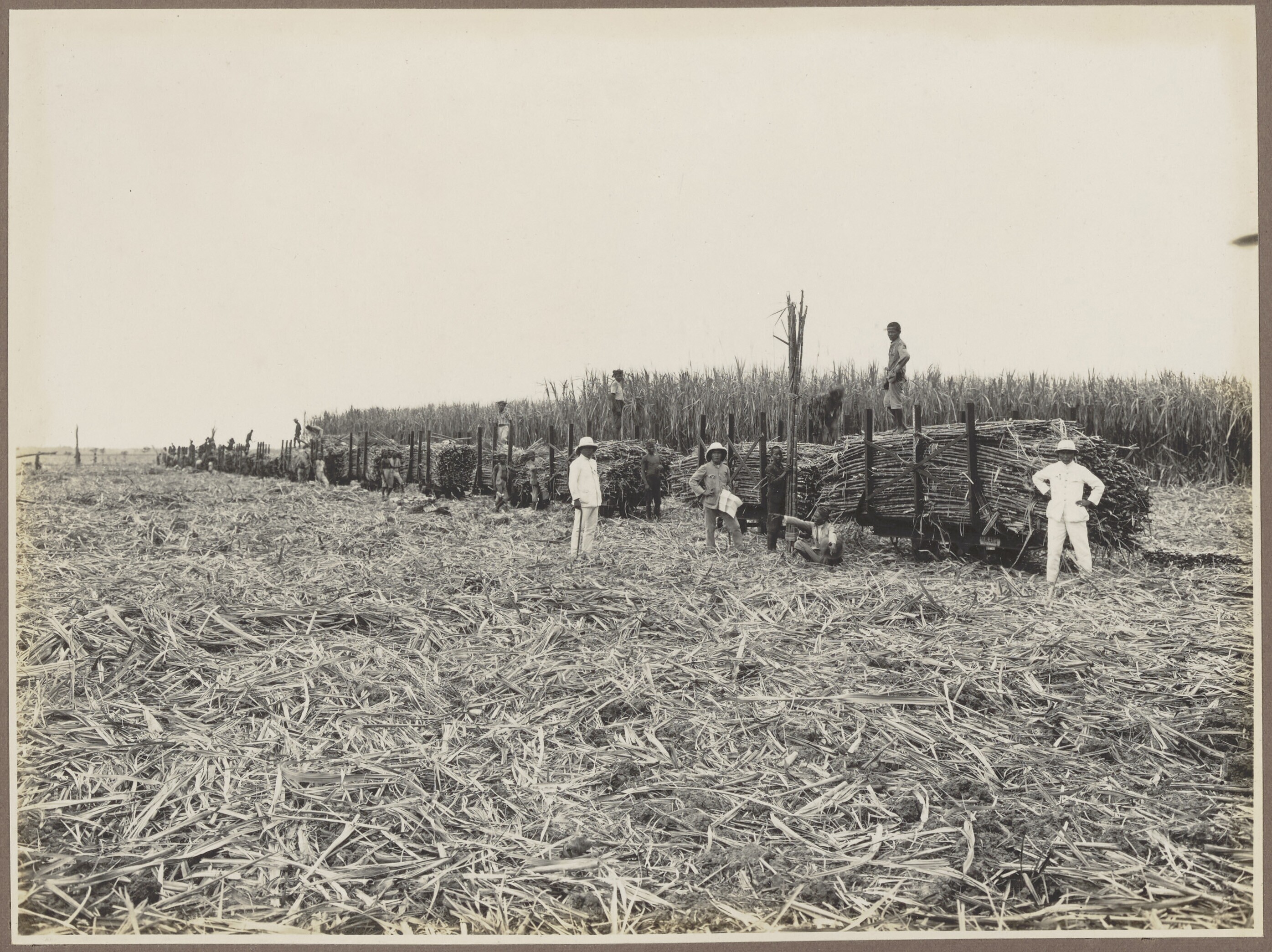 Suikerriet die op de wagons voor transpoort worden g...