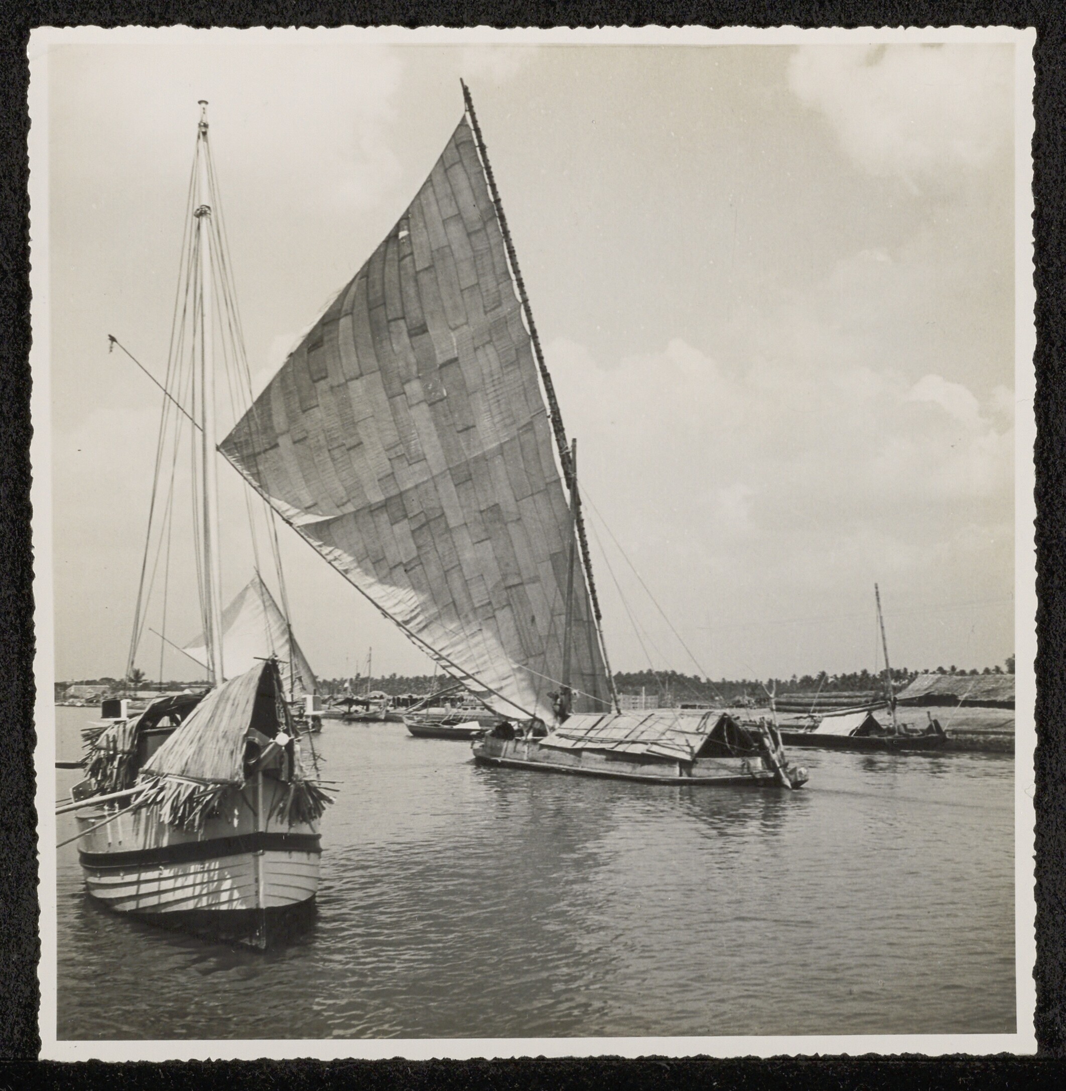 Een prauw met gehesen zeil, Pasar Ikan, Batavia