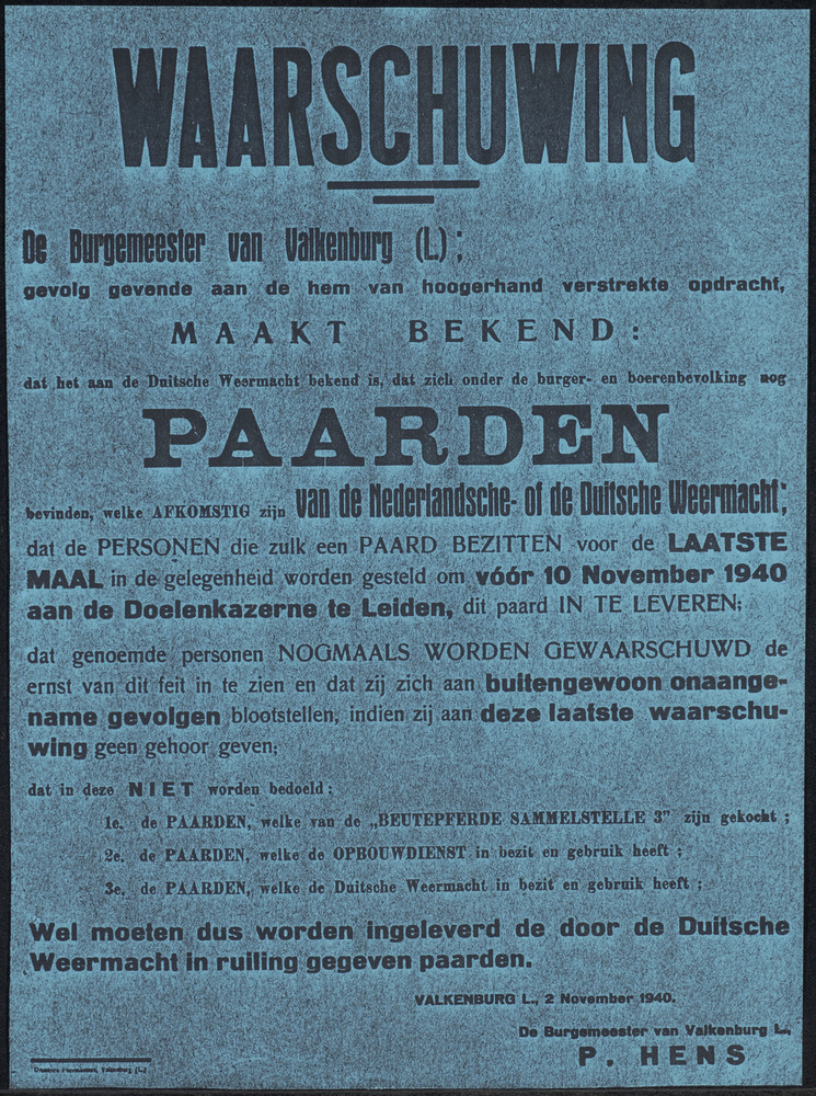 Kopie van een Affiche "Waarschuwing, De Burgemeester...
