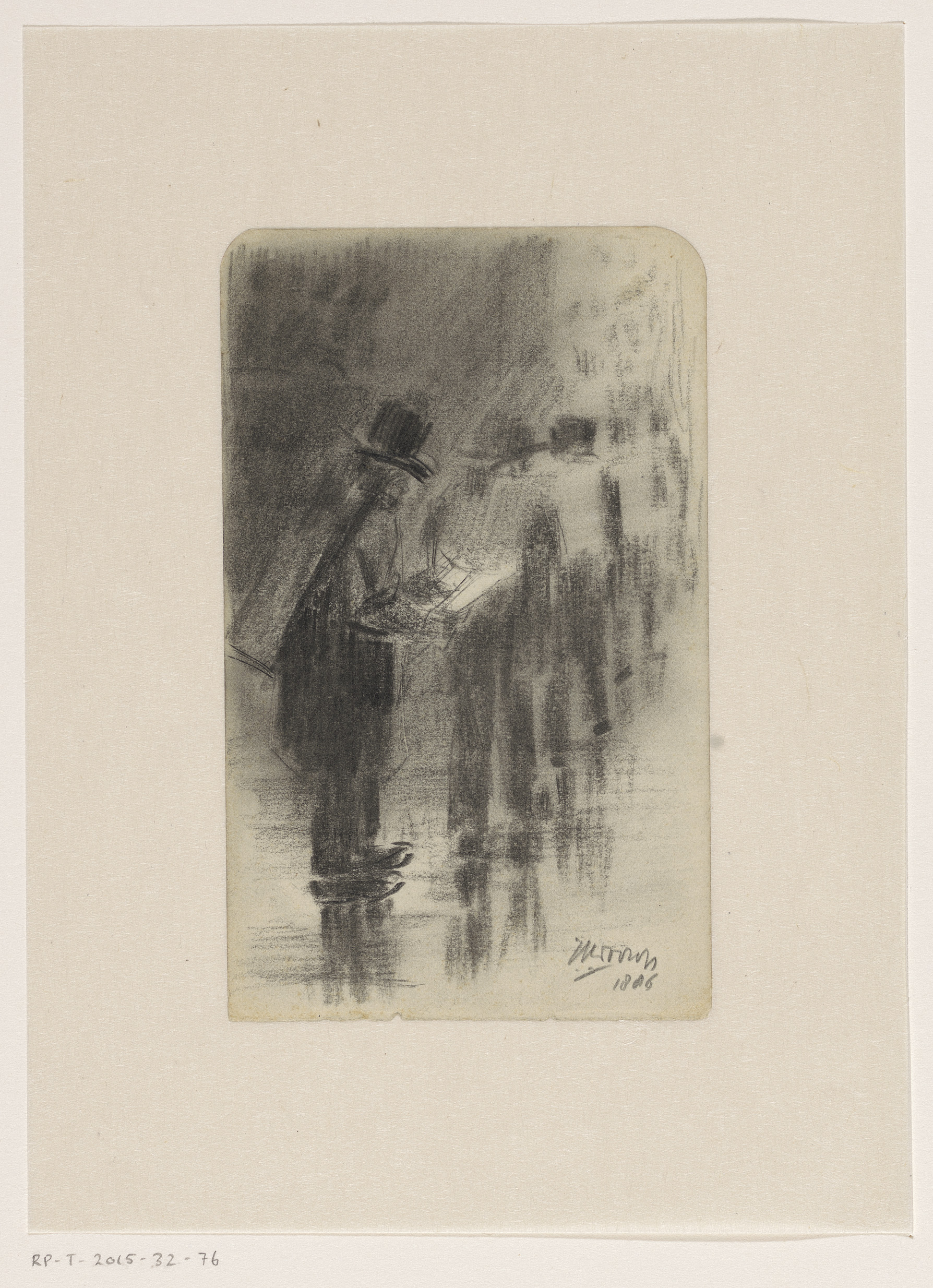 Straatverkoper verkoopt het tijdschrift Gil Blas