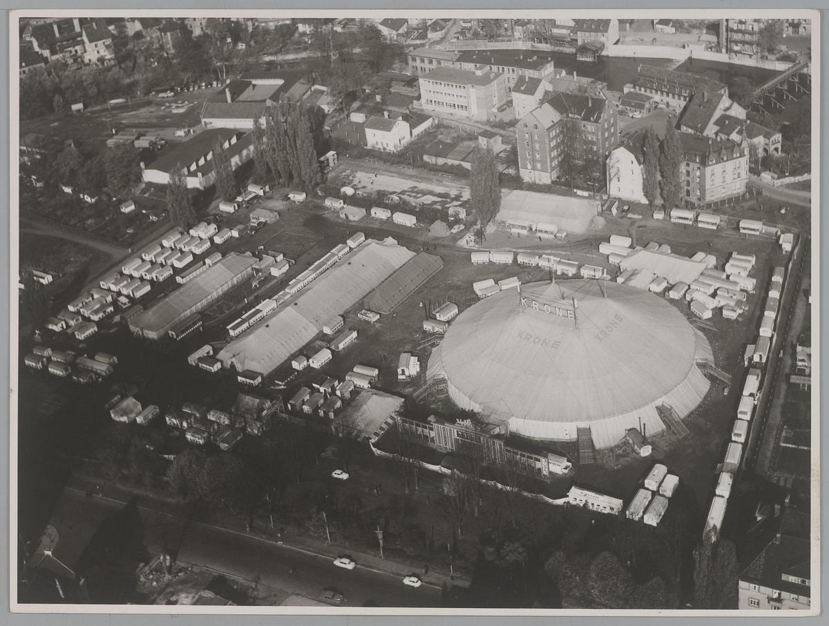 Luchtfoto Circus Krone in Oostenrijk, na 1960