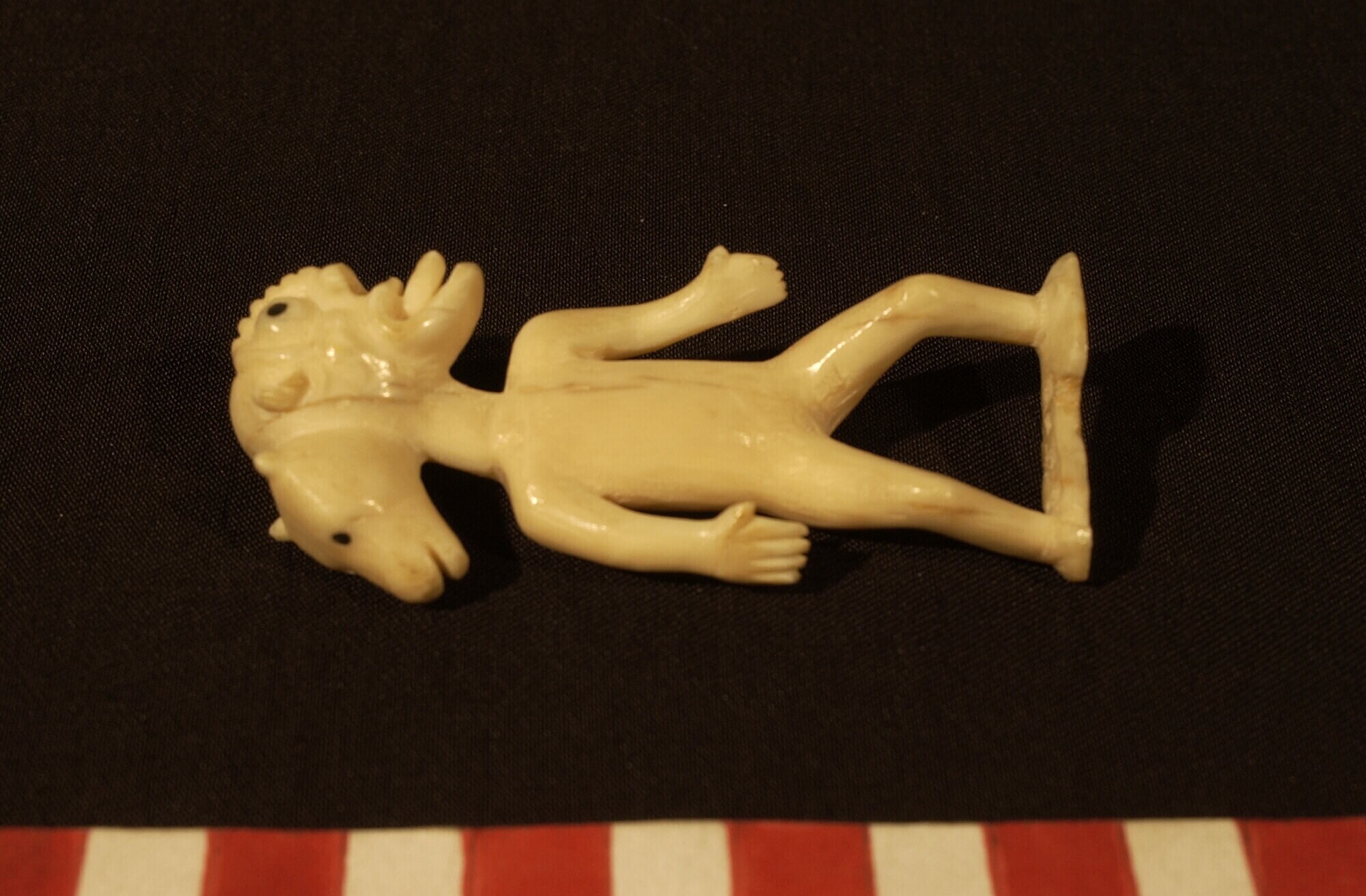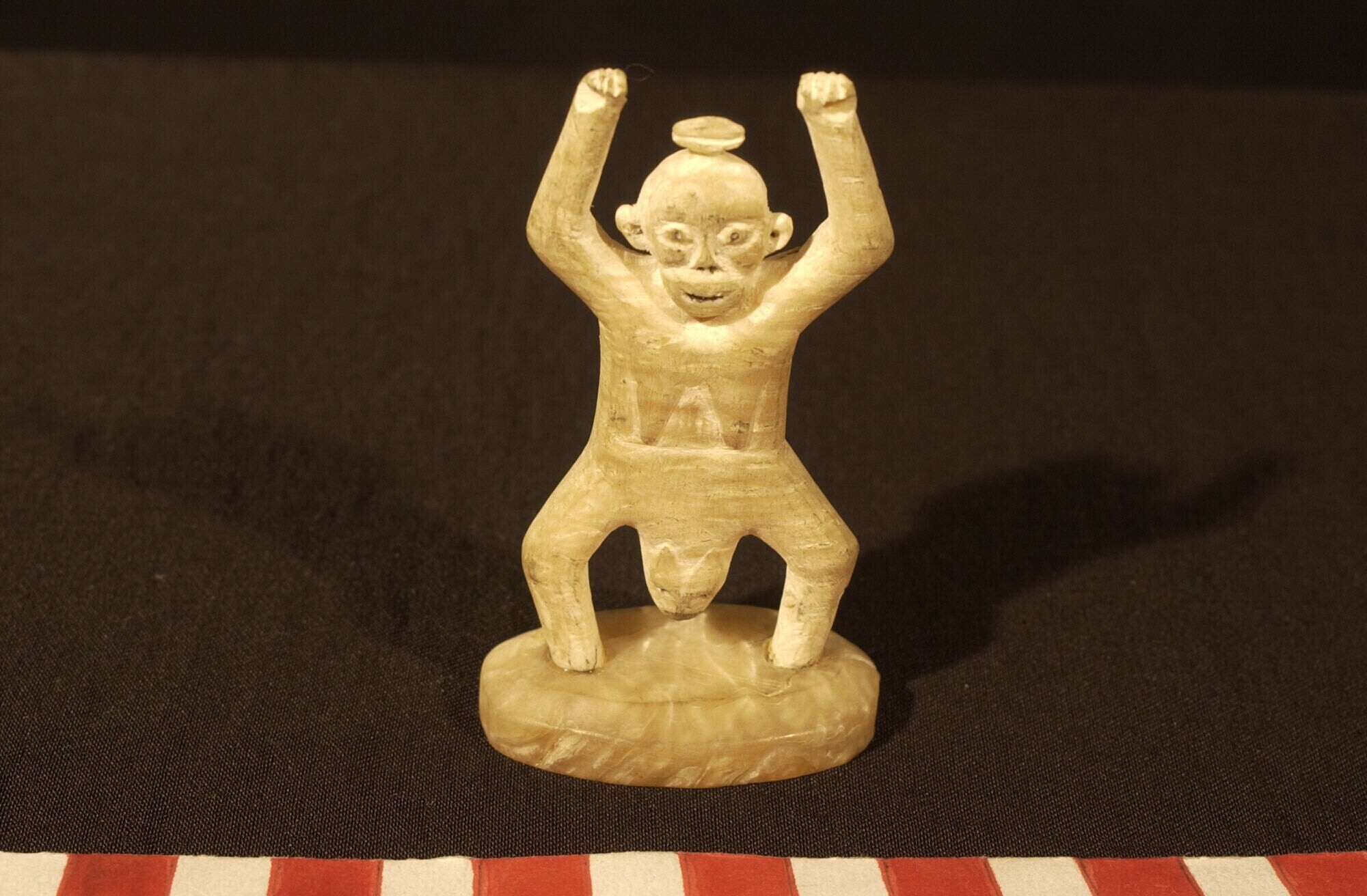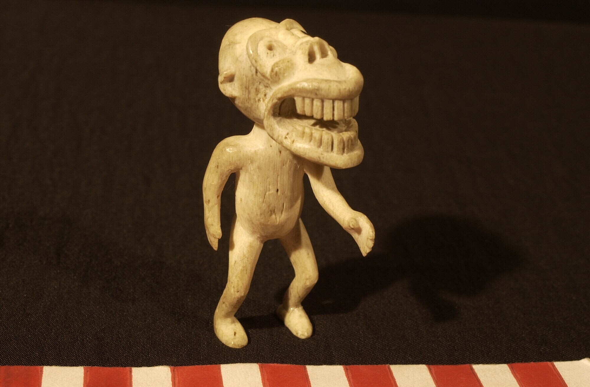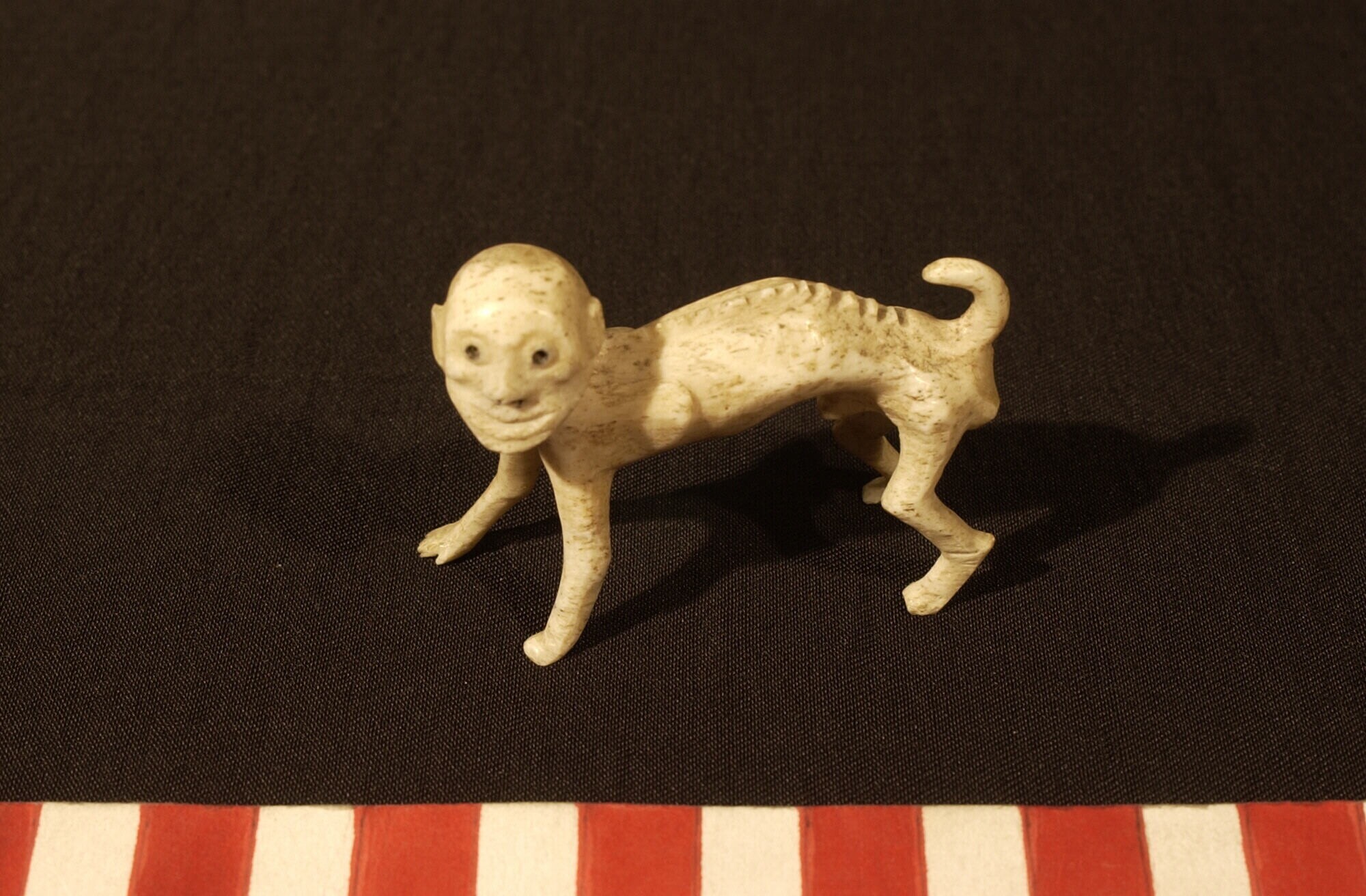 Snijwerk: Hondachtige karikatuur met mannenhoofd