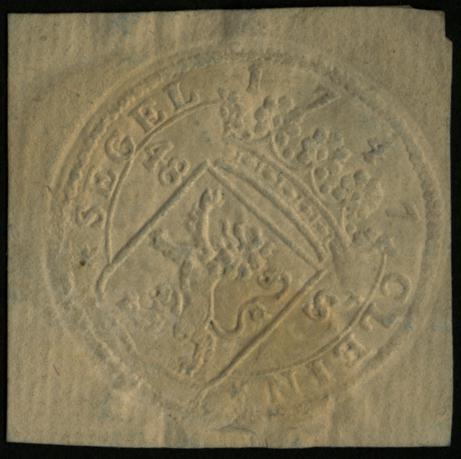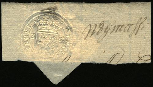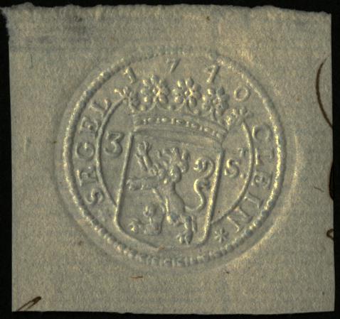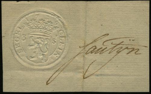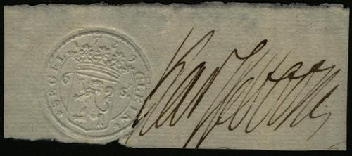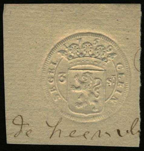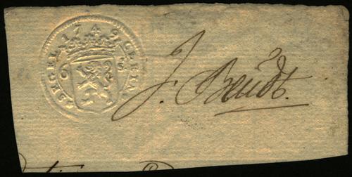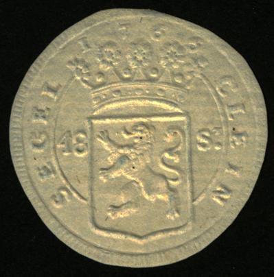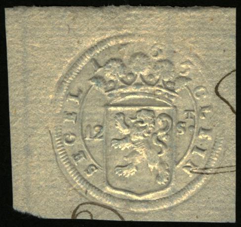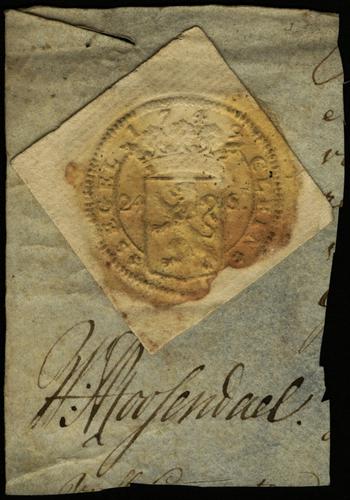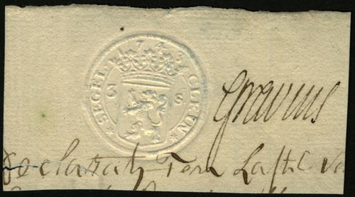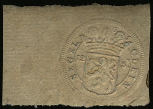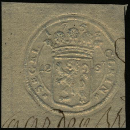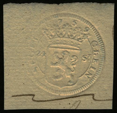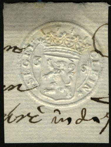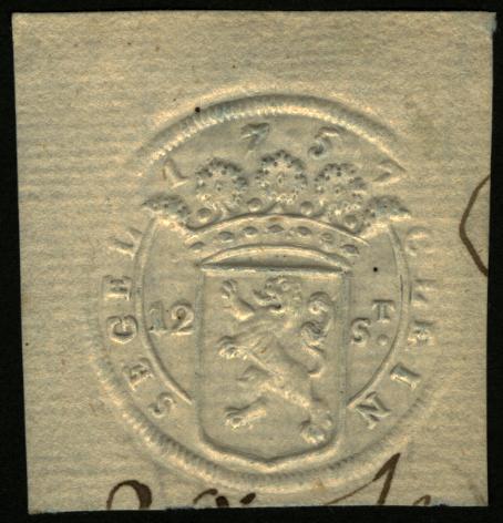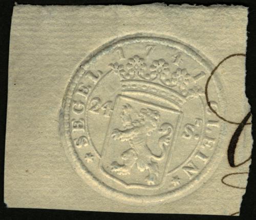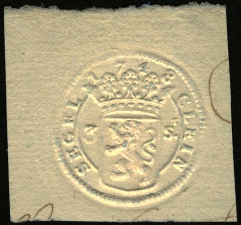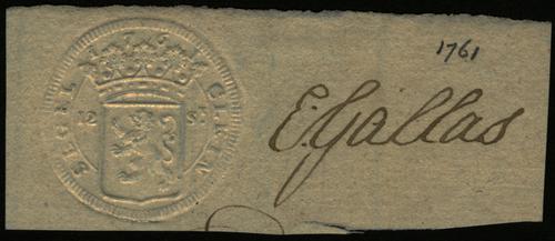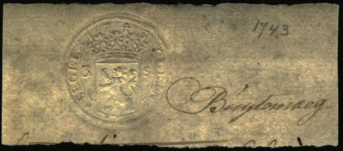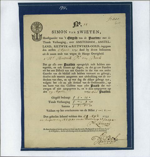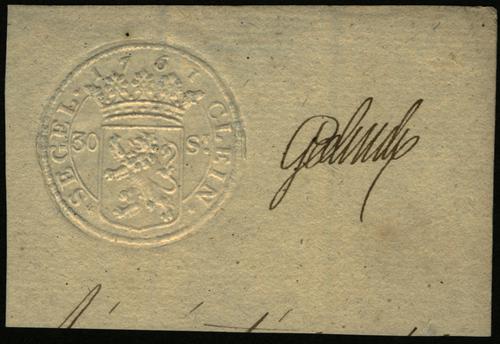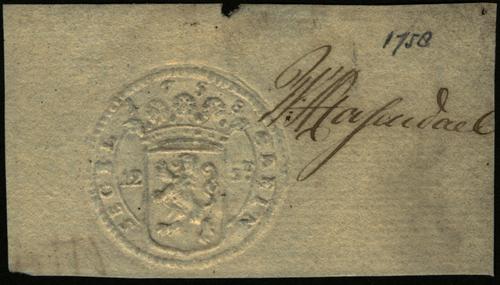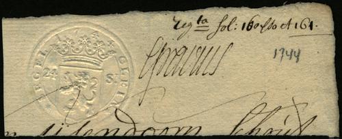 Aanslagbiljet, kleinzegel, oirgeld paarden, 1749