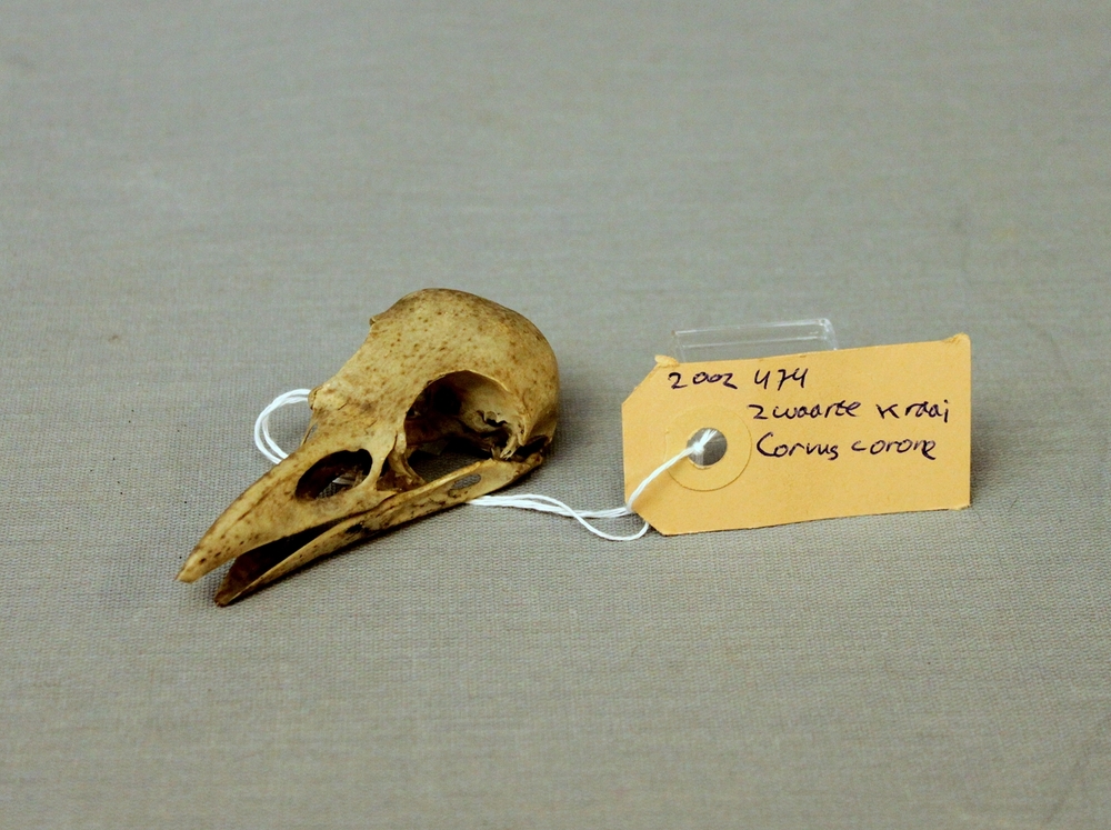 Zwarte kraai; schedel met ondersnavel