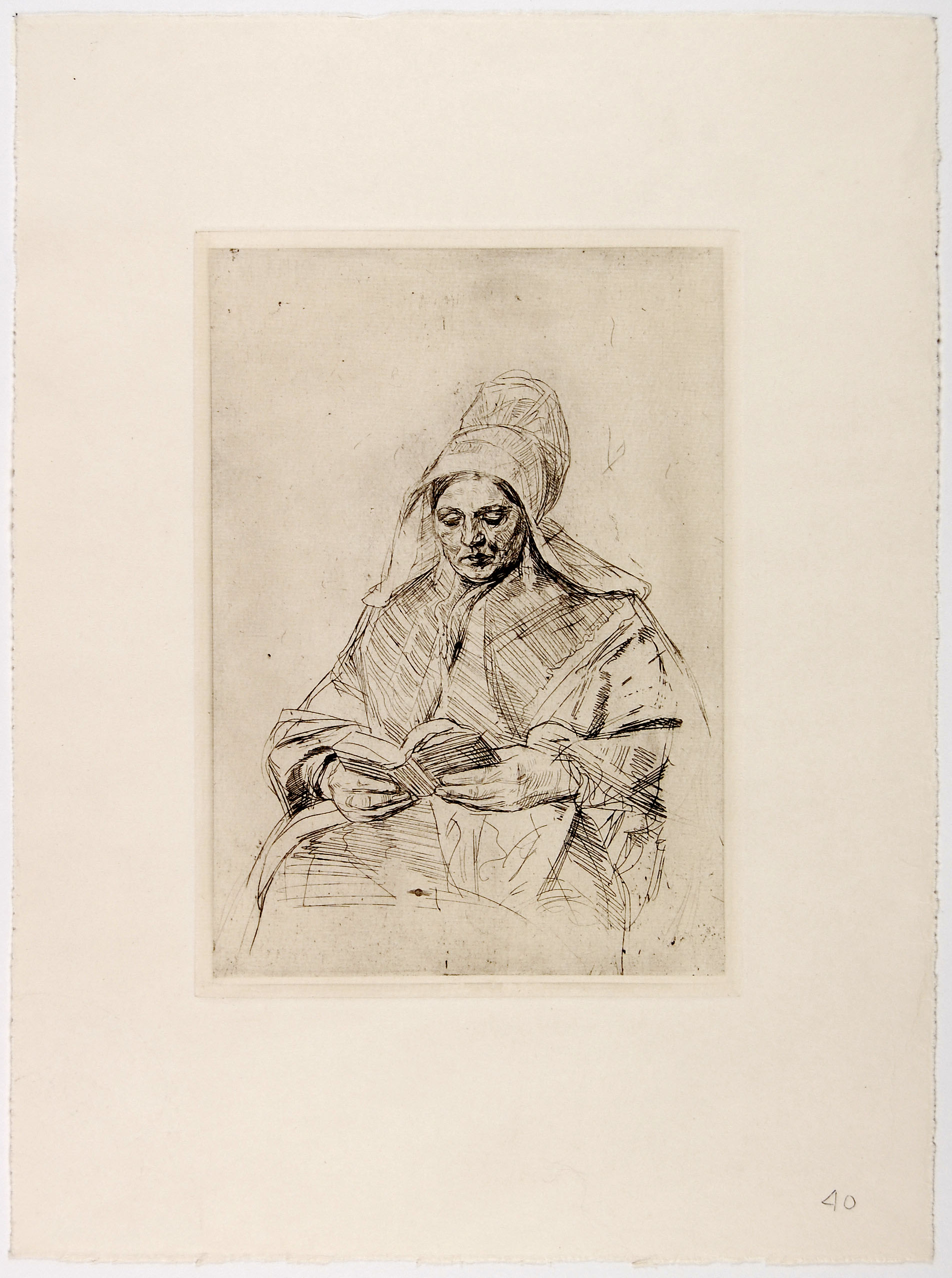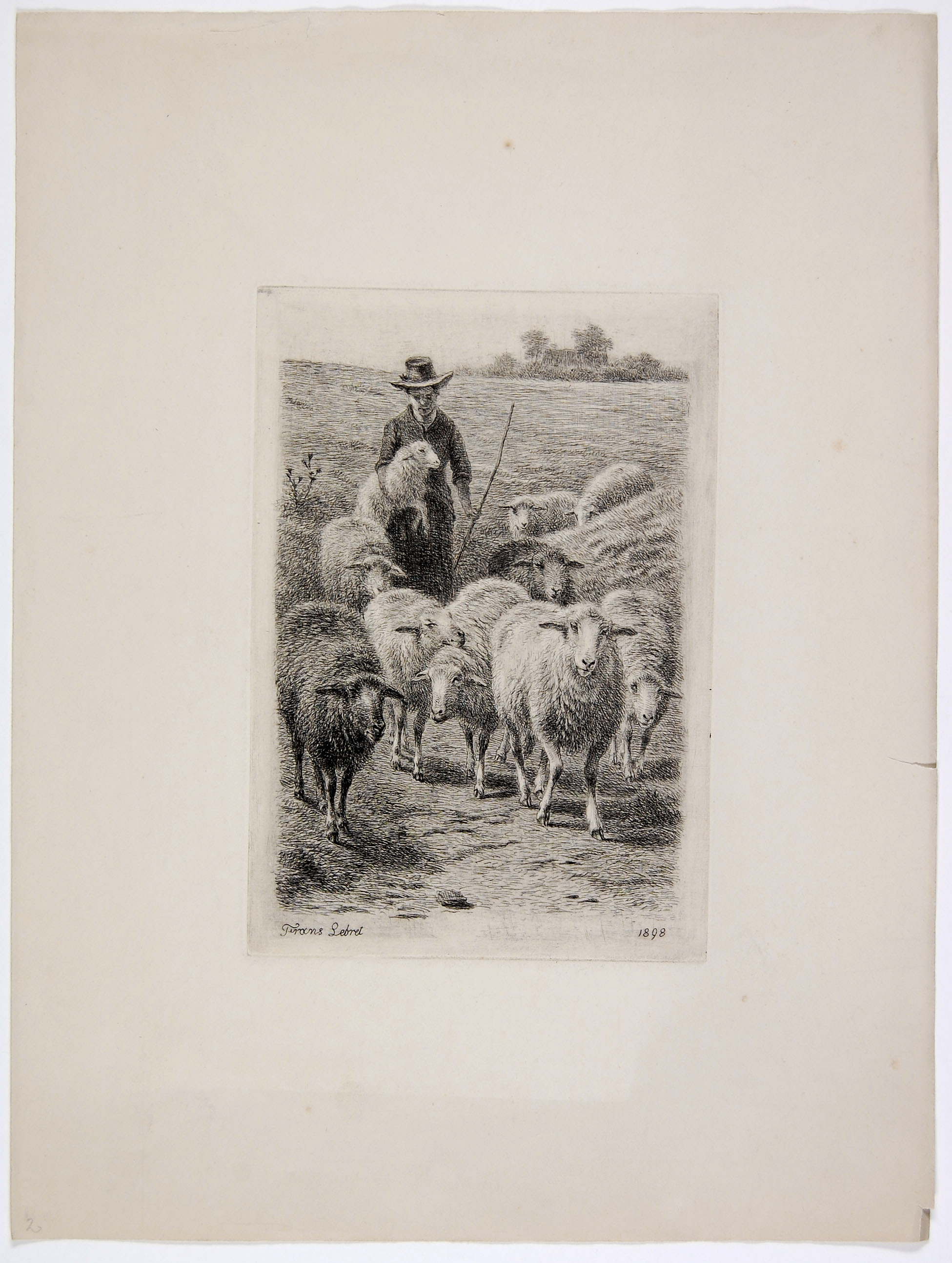 Zittende herderin met schapen