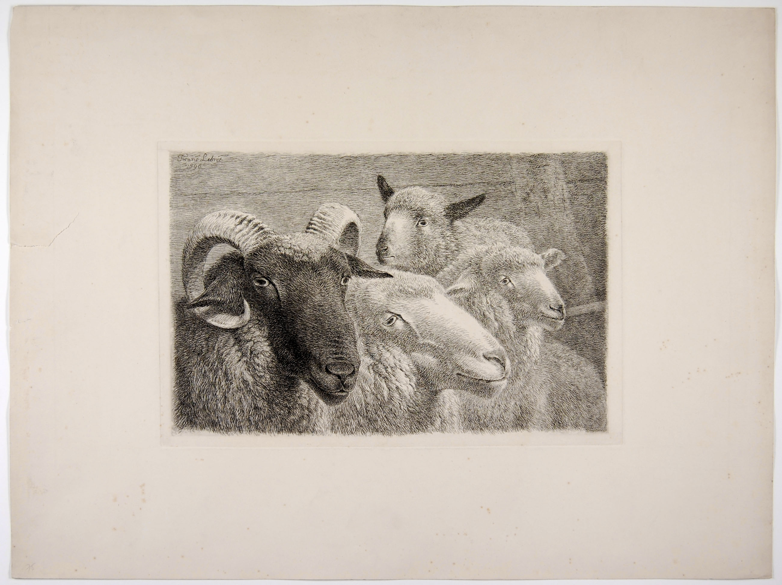 Een ramskop, twee schaapskoppen, lamskop