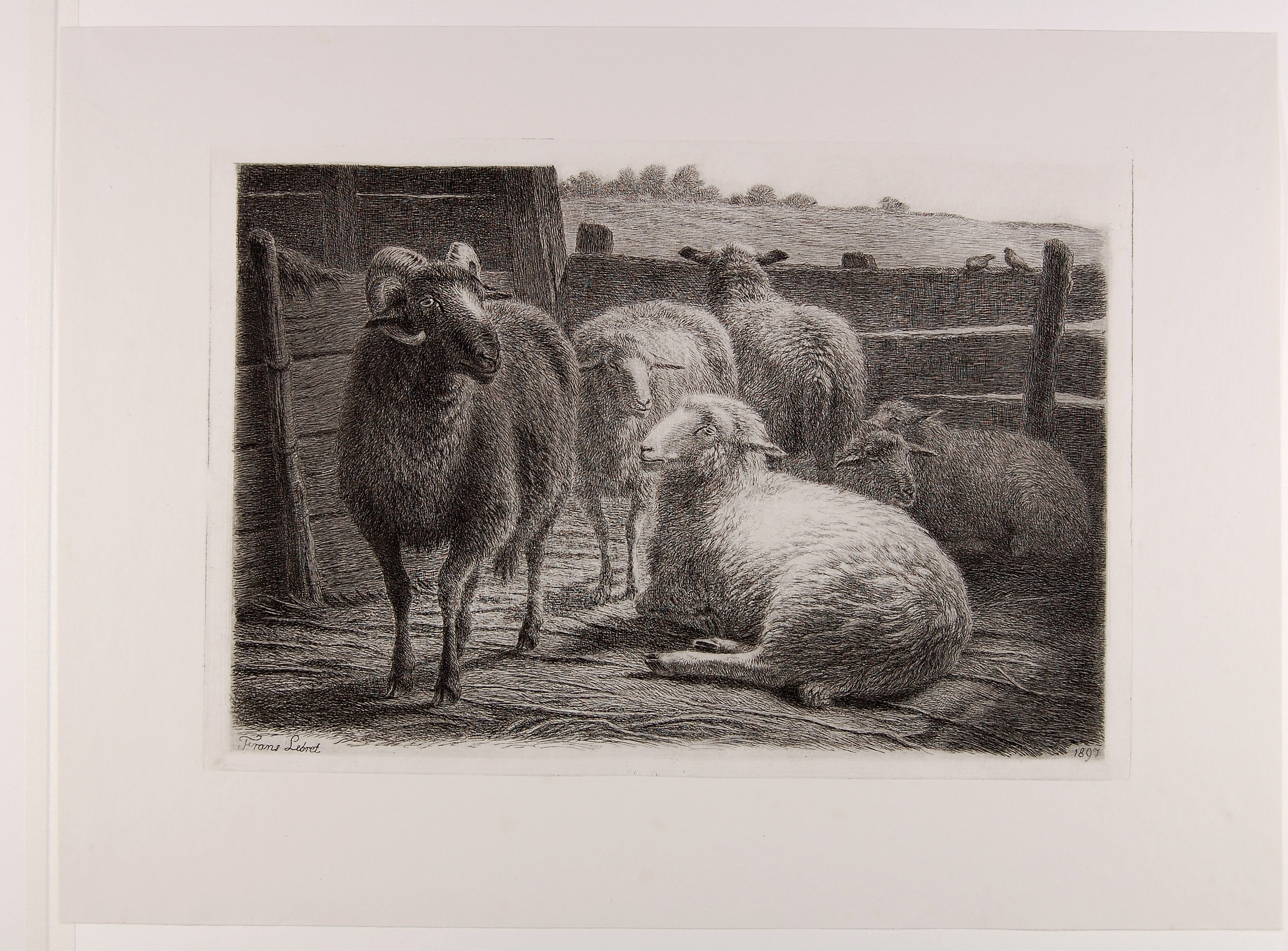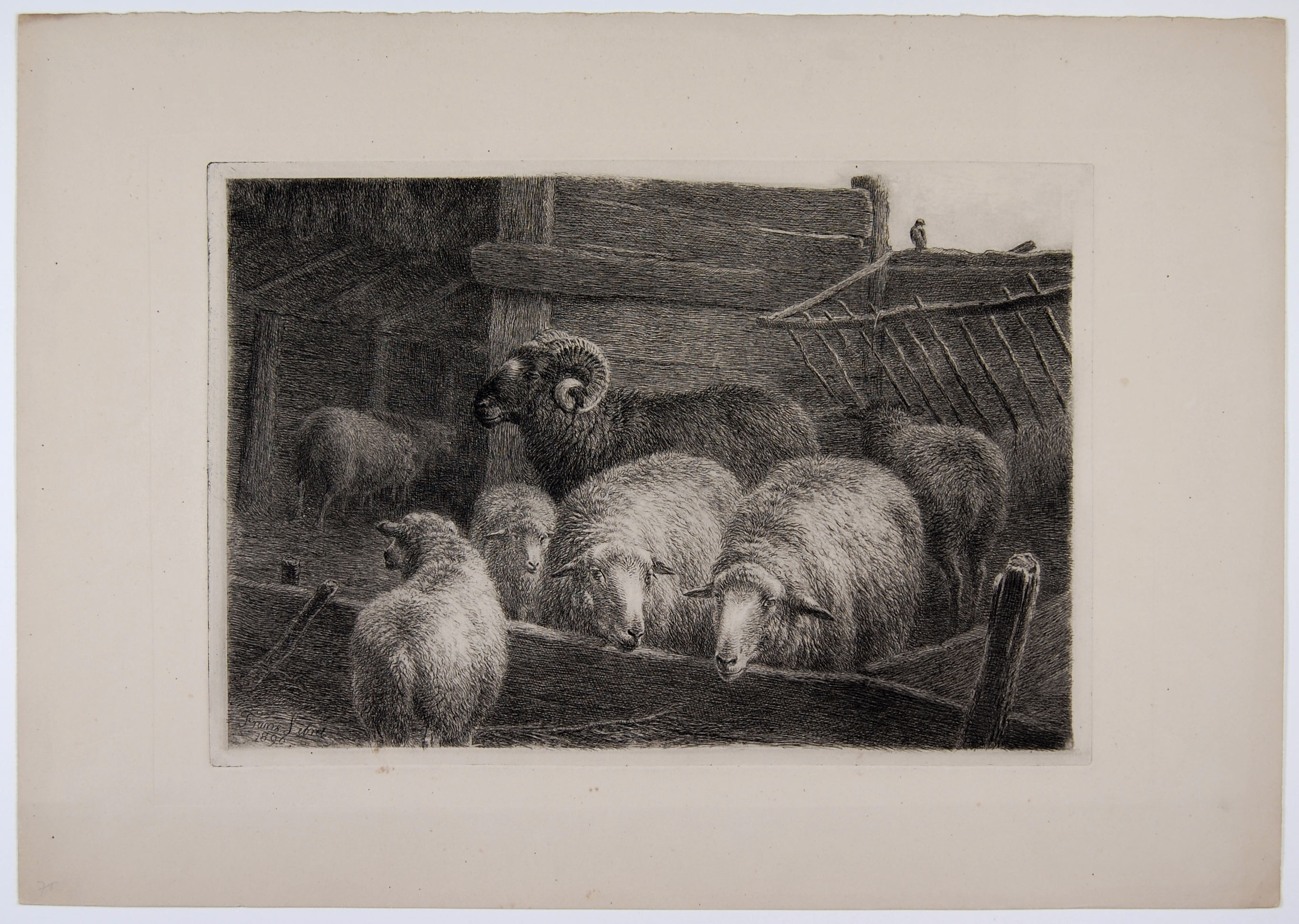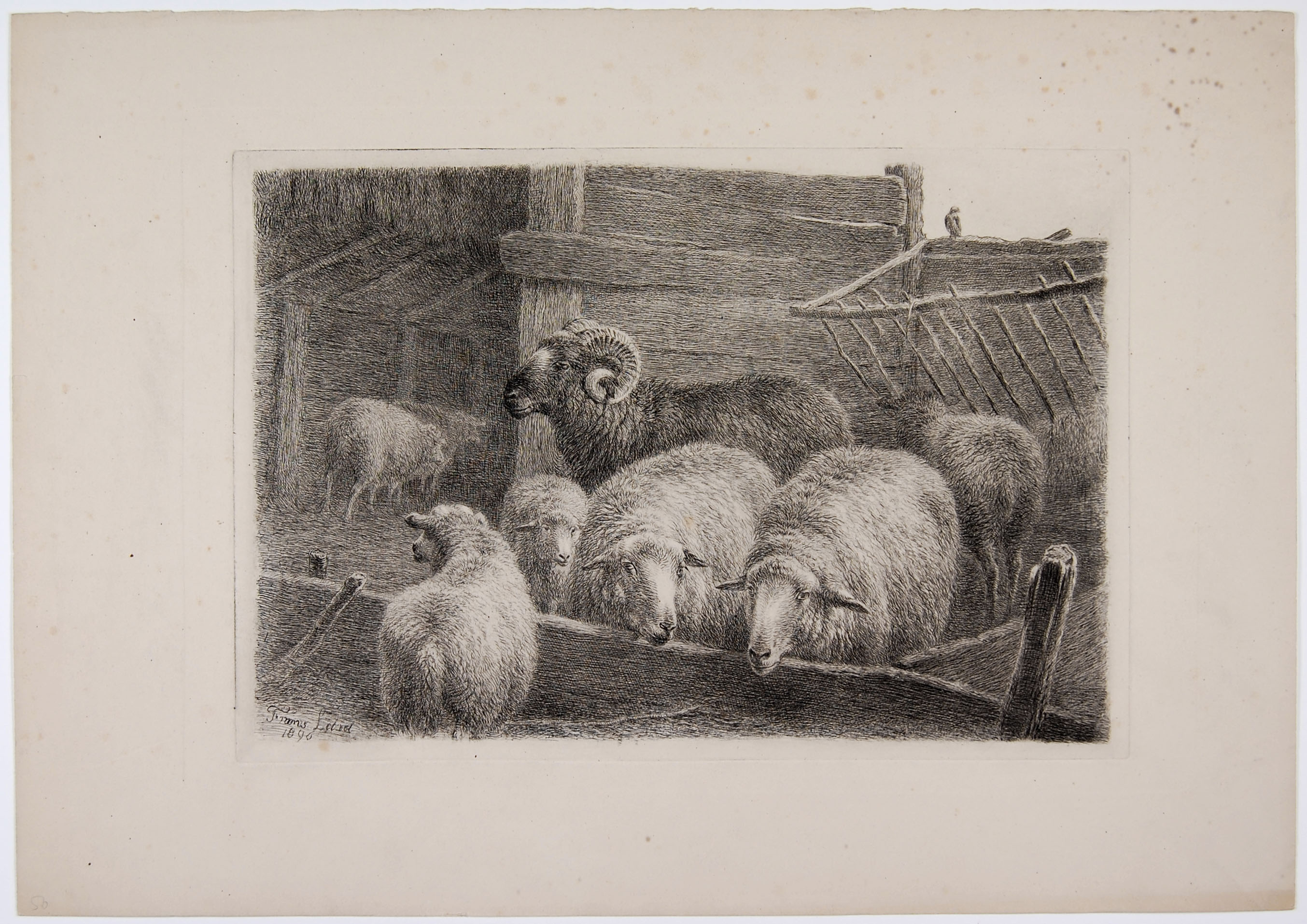 Stal met schapen en een ram