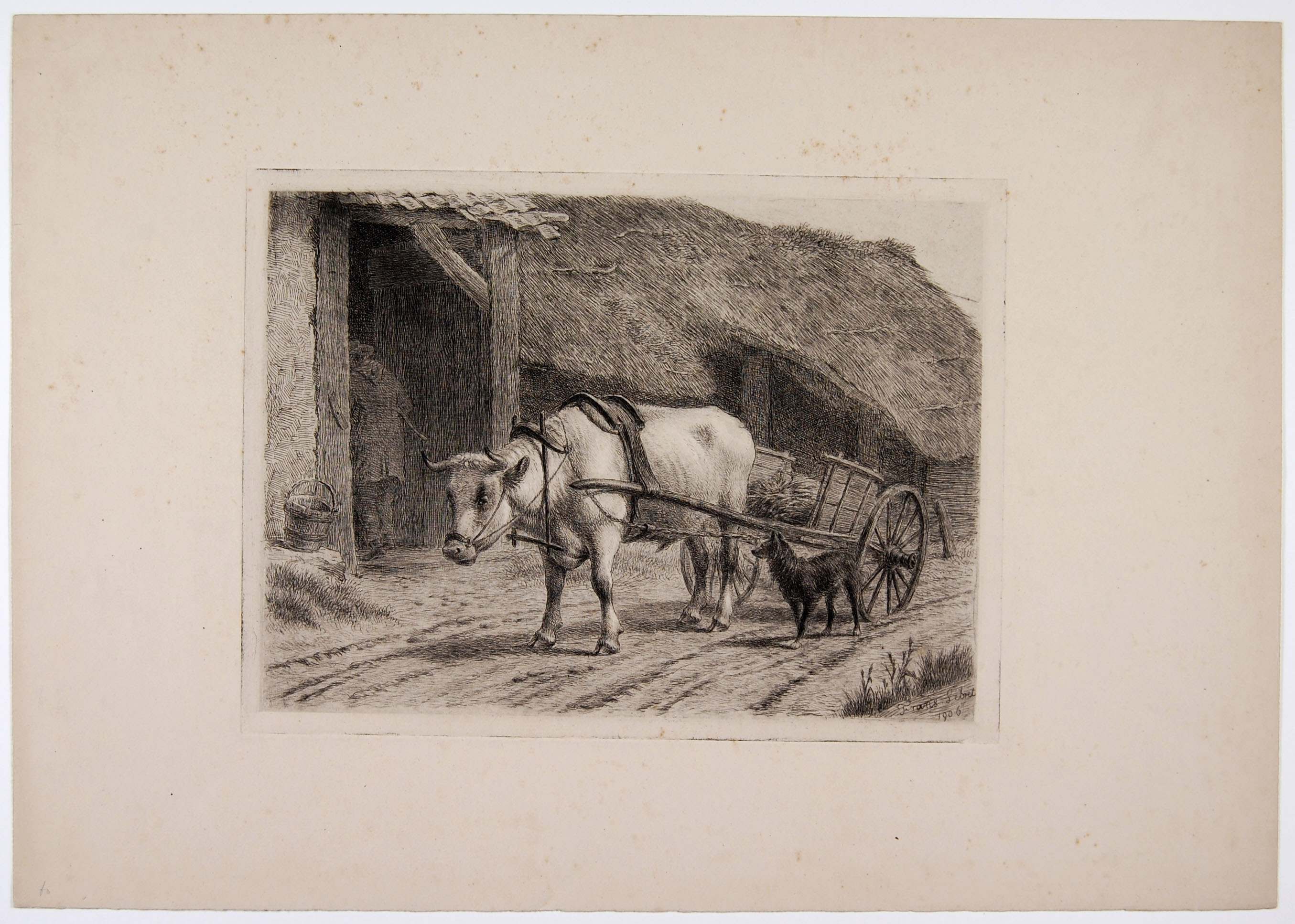 Ossenwagen voor boerderij