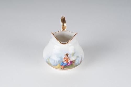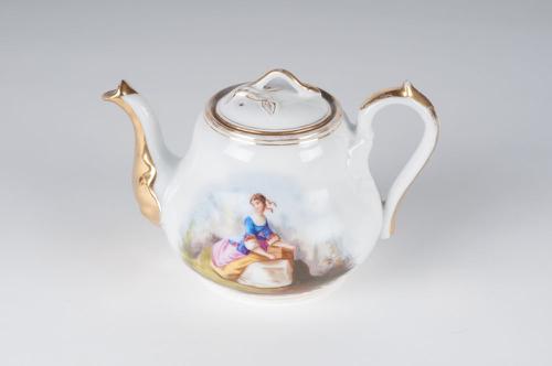 Duitse theepot gedecoreerd met een dame en een jongeman