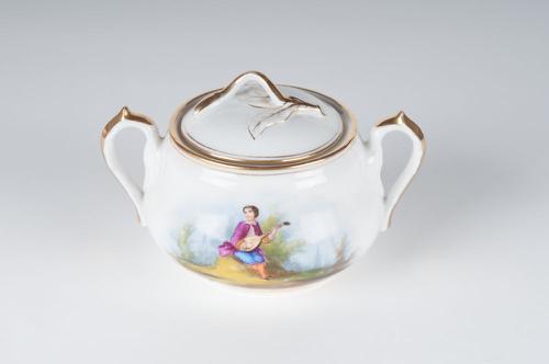Duitse suikerpot gedecoreerd met een meisje en een man