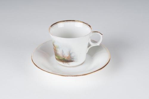 Duits kopje gedecoreerd met een meisje met een bloem...