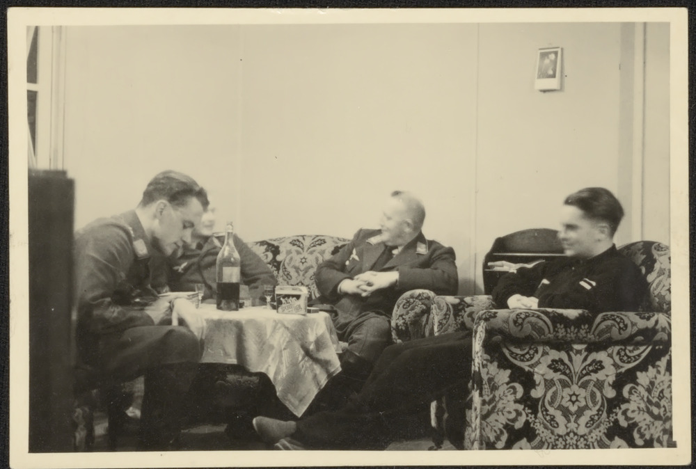 Vier Duitse militairen drinken een glas.