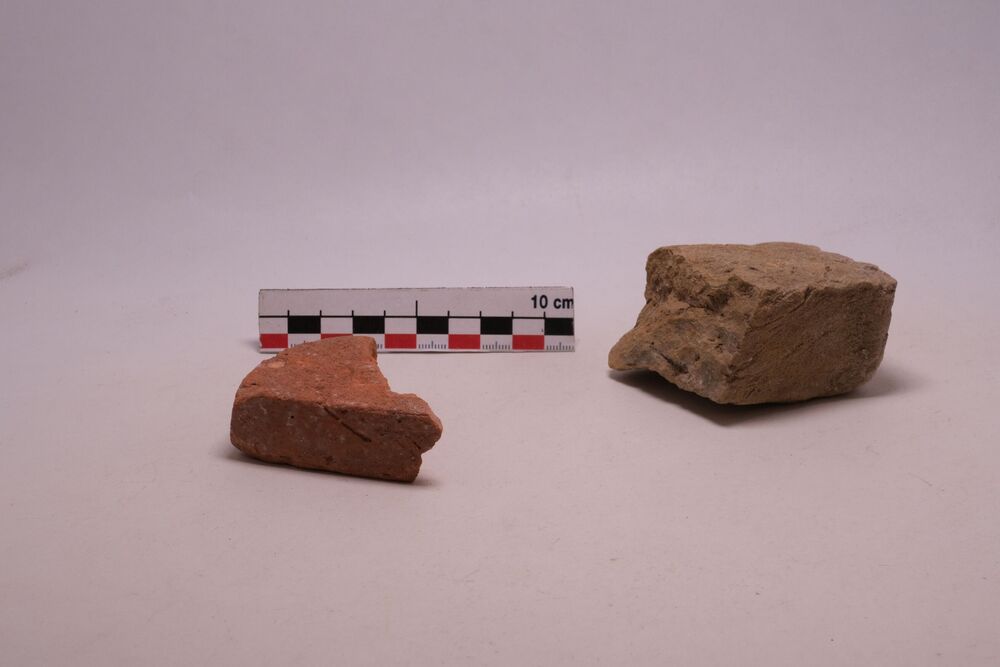 Fragmenten, majolica/aardewerk/leer/pijpaarde,