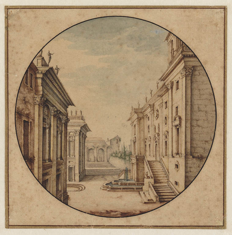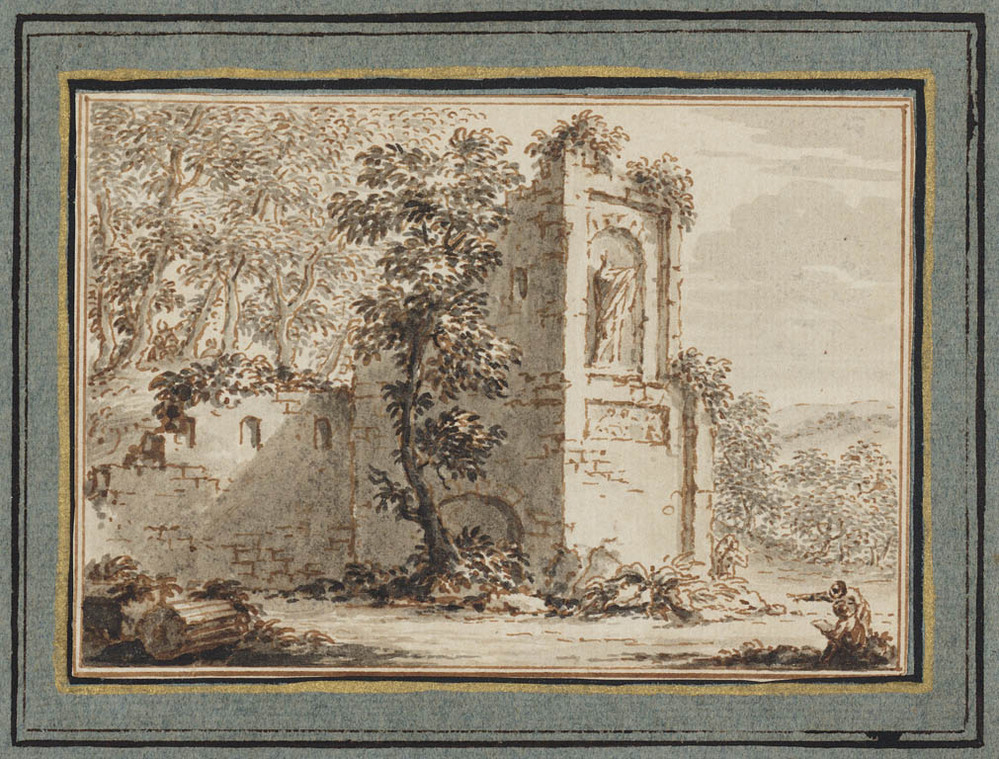Romeinse ruïne met tekenaar