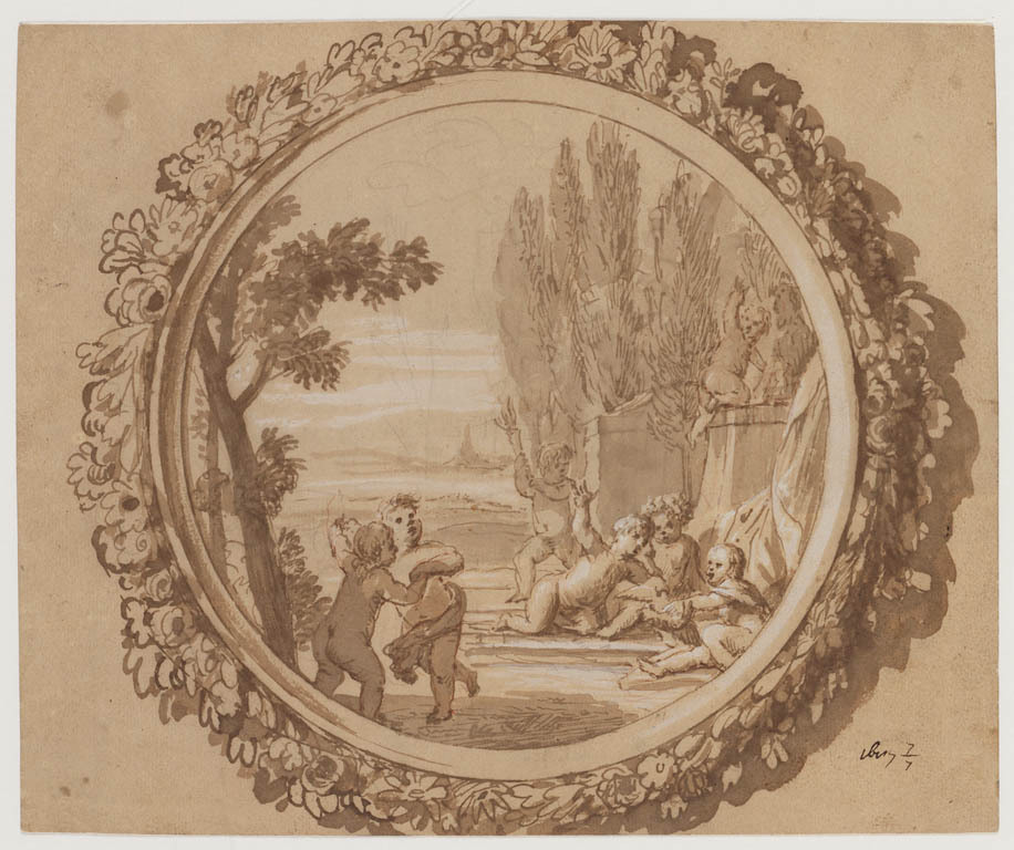 Zeven putti met gans, in tondo