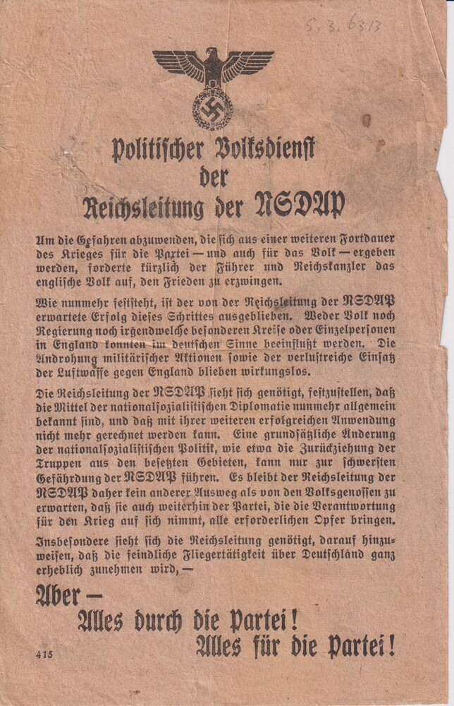 Pamflet: "Politischer Volksdienst der Reichsleitung ...