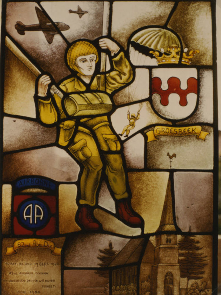 Foto van glas in lood raam dalende Amerikaanse parac...
