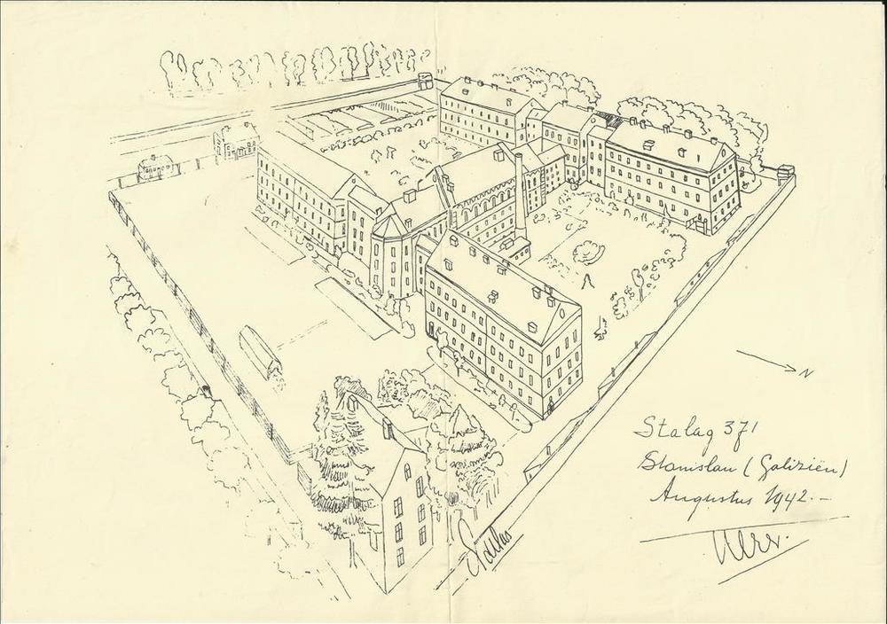 drie barakken in Stalag IVb te Mühlberg aan de Elbe