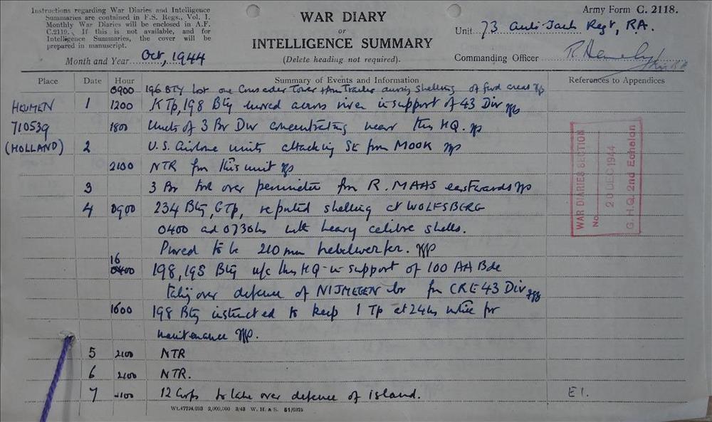 War Diary 73rd Anti Tank Regiment RA, oktober 1944