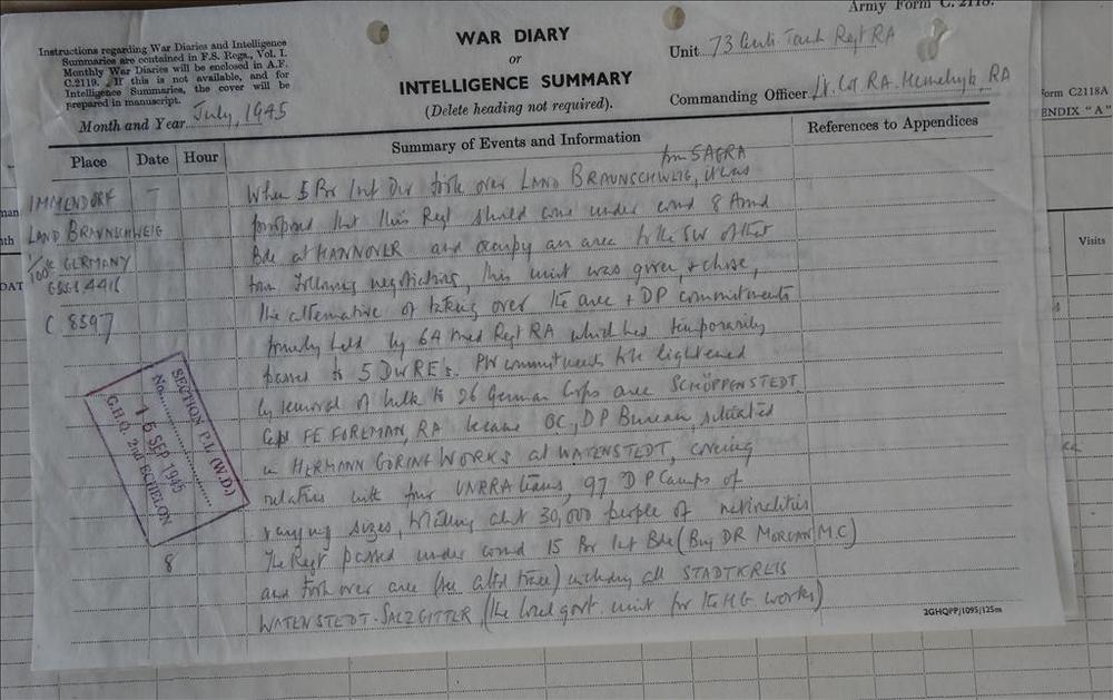 War Diary 73rd Anti Tank Regiment RA, juli 1945