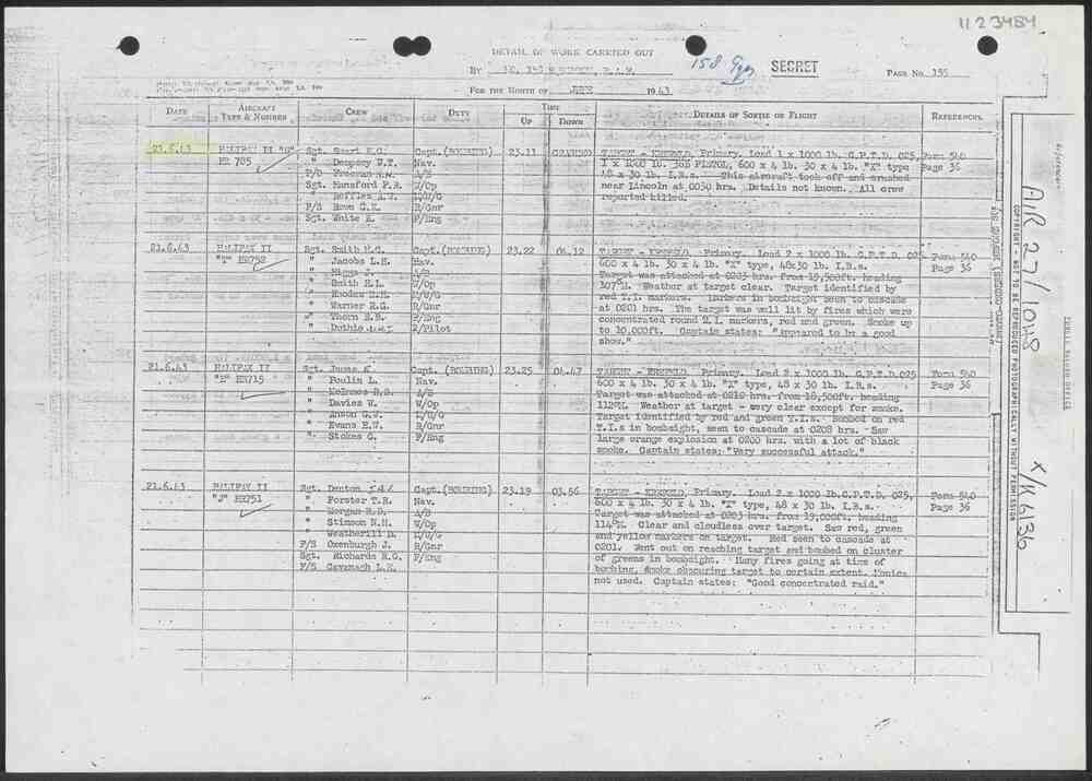 Operational Record Book No. 158 squadron R.A.F. Air ...