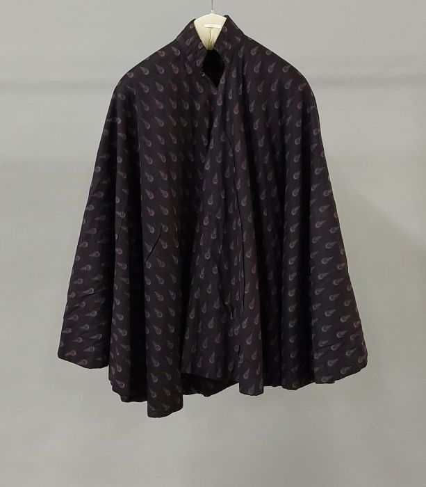 Lange cape van gewatteerde zwarte wol, brede kraag m...