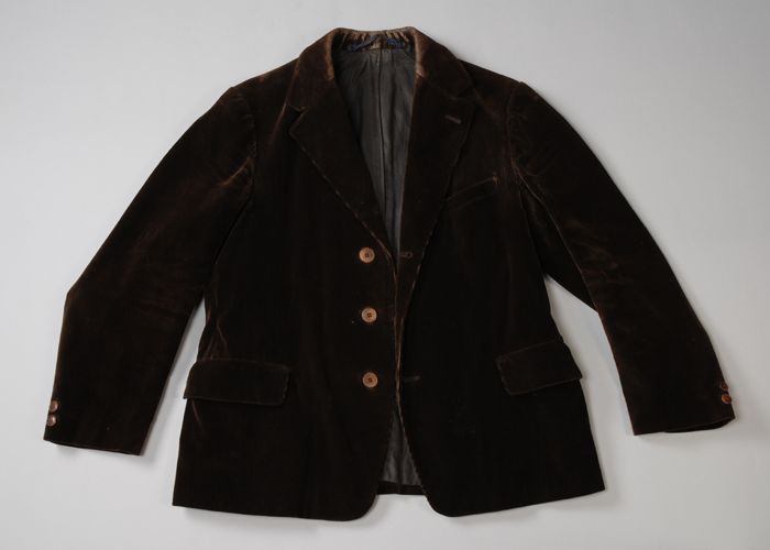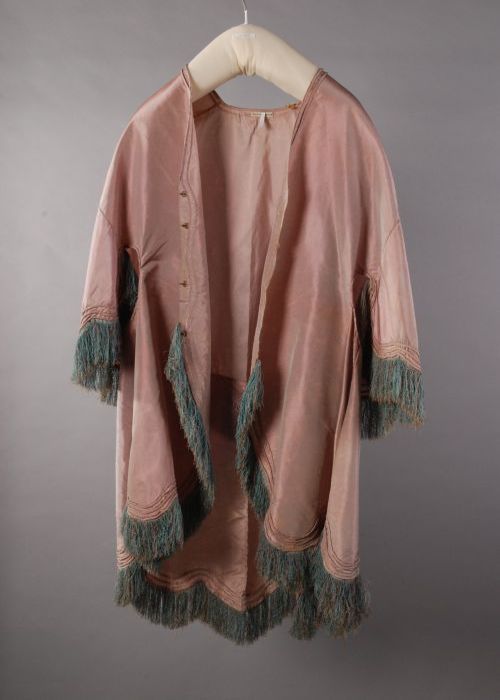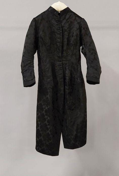Jas van zwart zijdesatijn met ingeweven bloemmotieve...