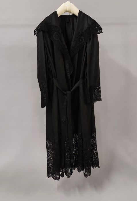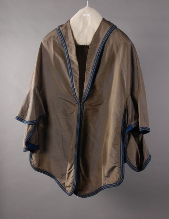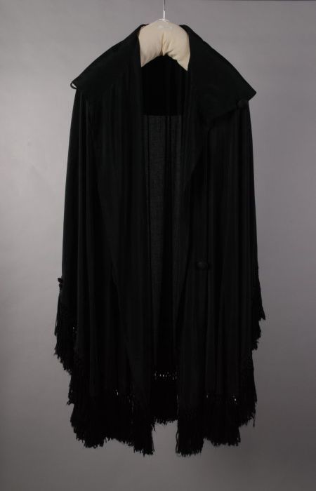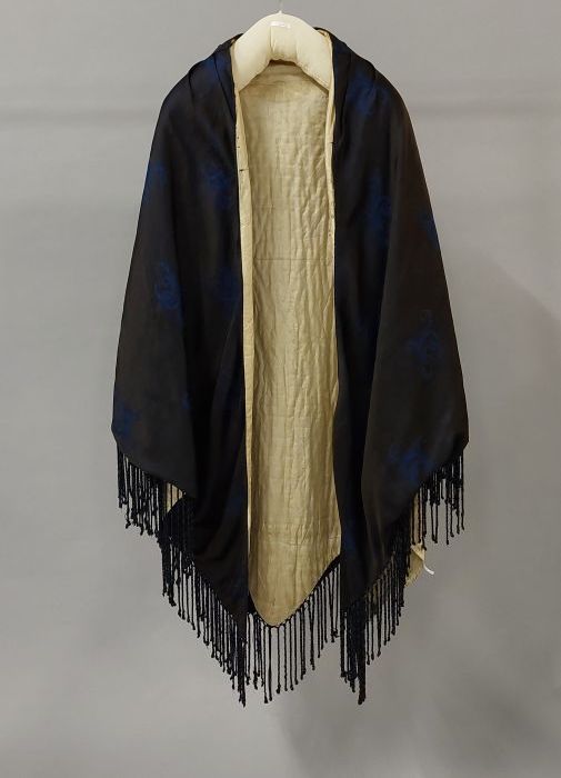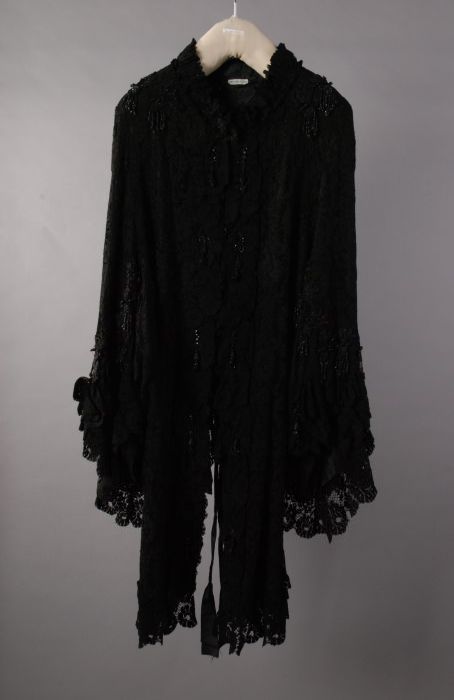 Dolman-cape van zwarte kant over zijde met koord en ...
