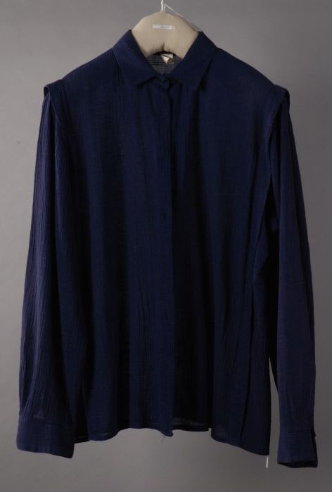 Rechte blouse van blauwe katoen, lange mouw en knoop...