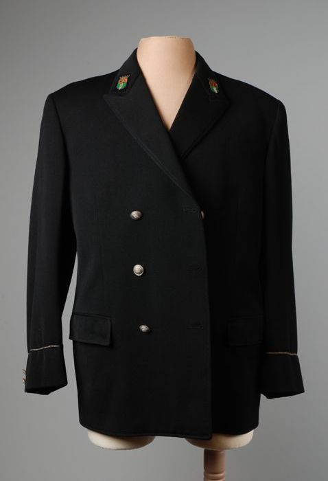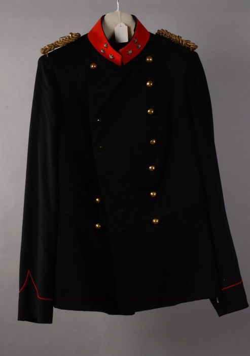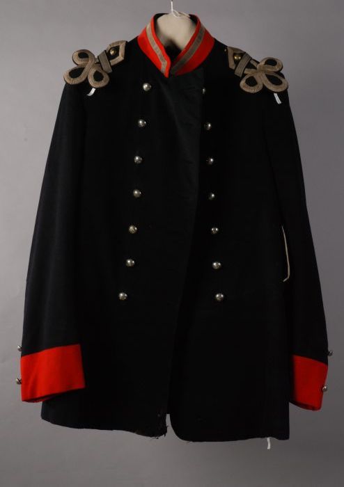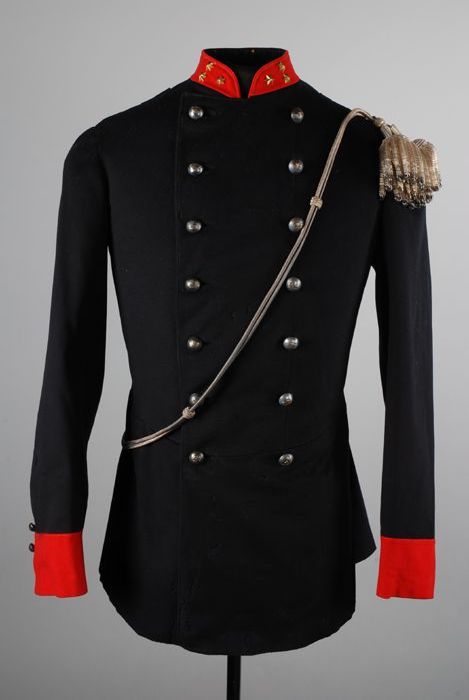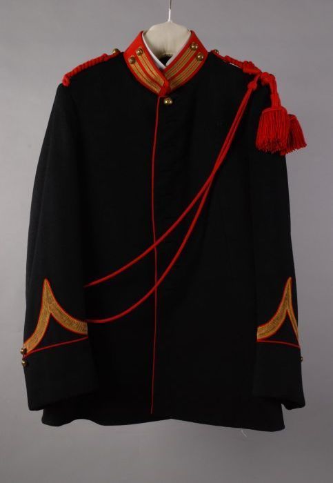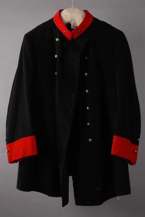 Uniformjas donkerblauw-zwart laken met rode kraag en...