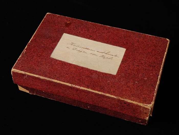 Doos beplakt met bordeauxrood papier, verpakking uni...