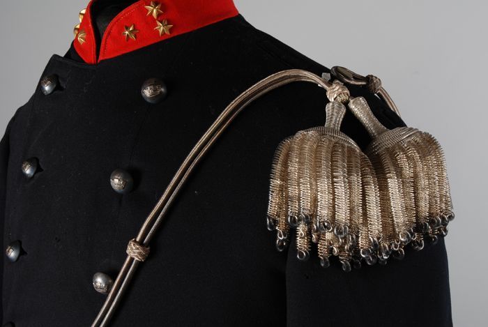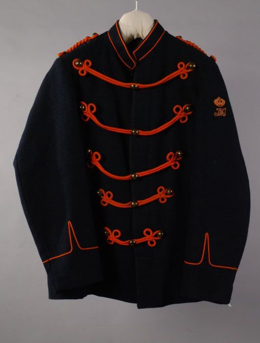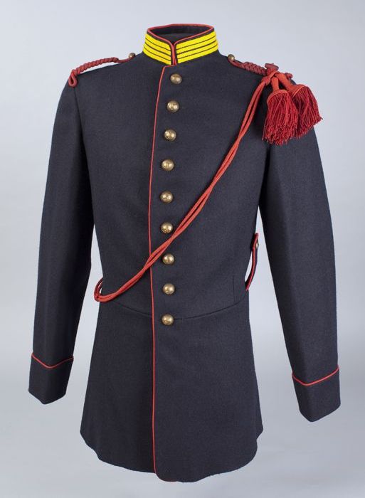 Uniformjas van donkerblauw laken met rode kraag en r...