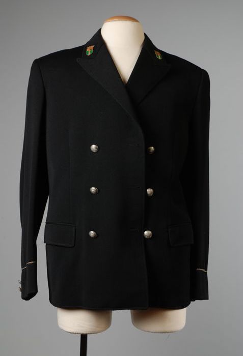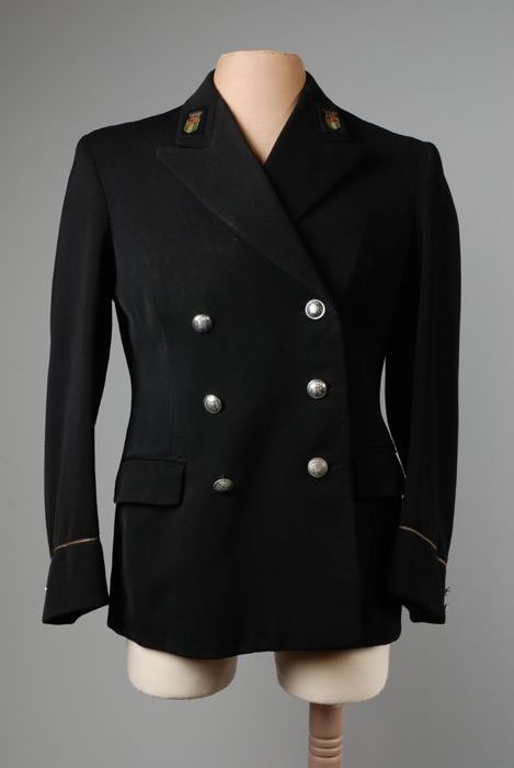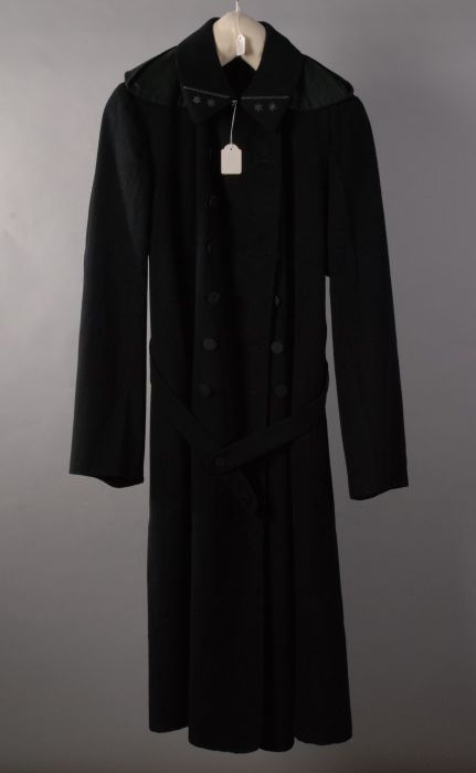 Uniformjas, lange overjas van donkerblauw laken, pla...