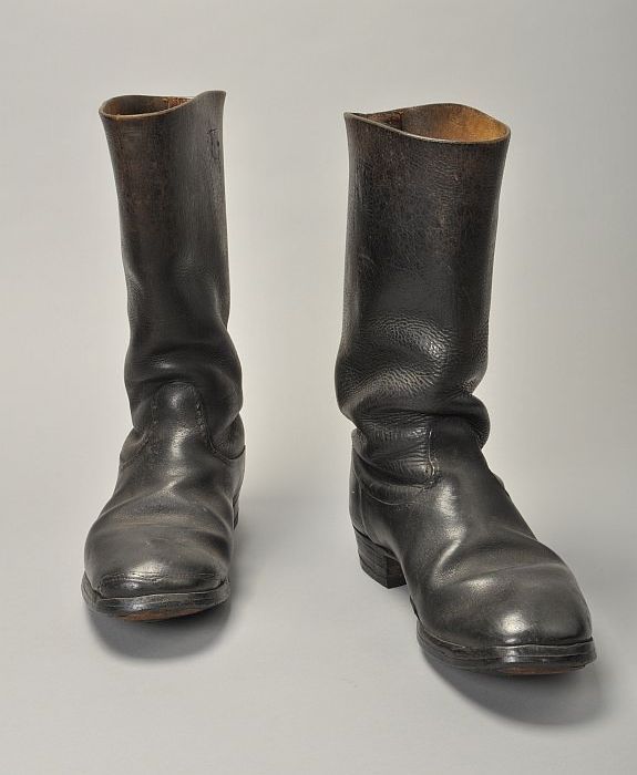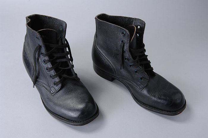 Paar enkelhoge stevige schoenen van zwart leer met z...