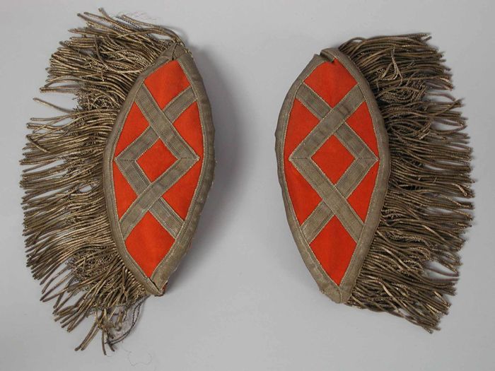 Fourragère of vangsnoer, zilveren snoer met twee afh...