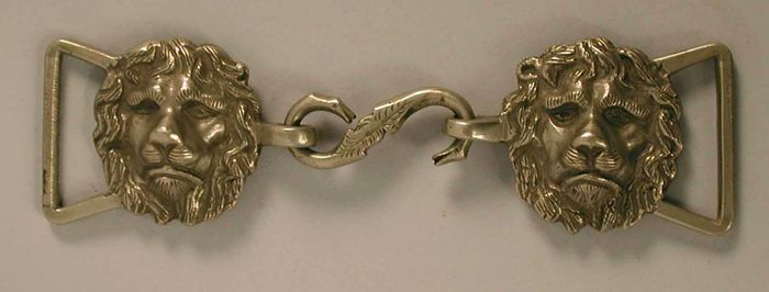 Koppelsluiting, twee wit metalen leeuwenkoppen met h...