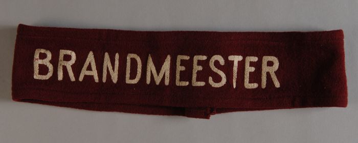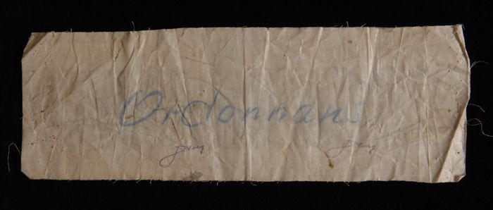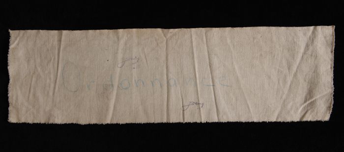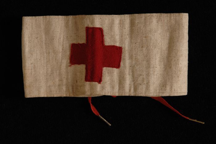 Mouwband van wit linnen met geappliqueerd rood kruis...