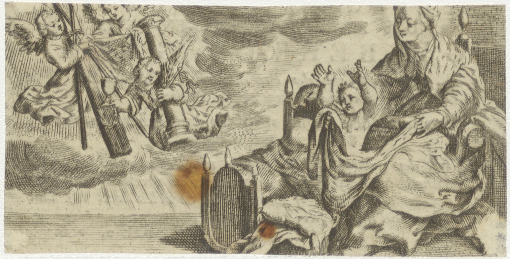 Maria met Christuskind en martelwerktuigen, kz. Reli...